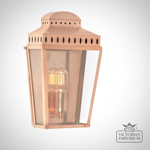 These solid brass hand crafted lanterns have a design dating from pre-Georgian times. The antique brass finish is waxed for durability.