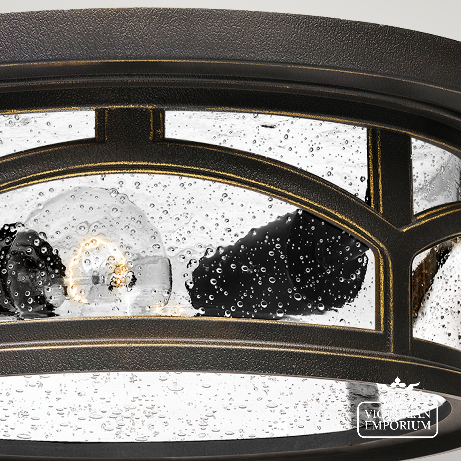 This light is bold and elegant with arches and clear seedy glass. It is made from a weather resistant composite material and has a 5 year guarantee. It is designed to withstand extremes of weather