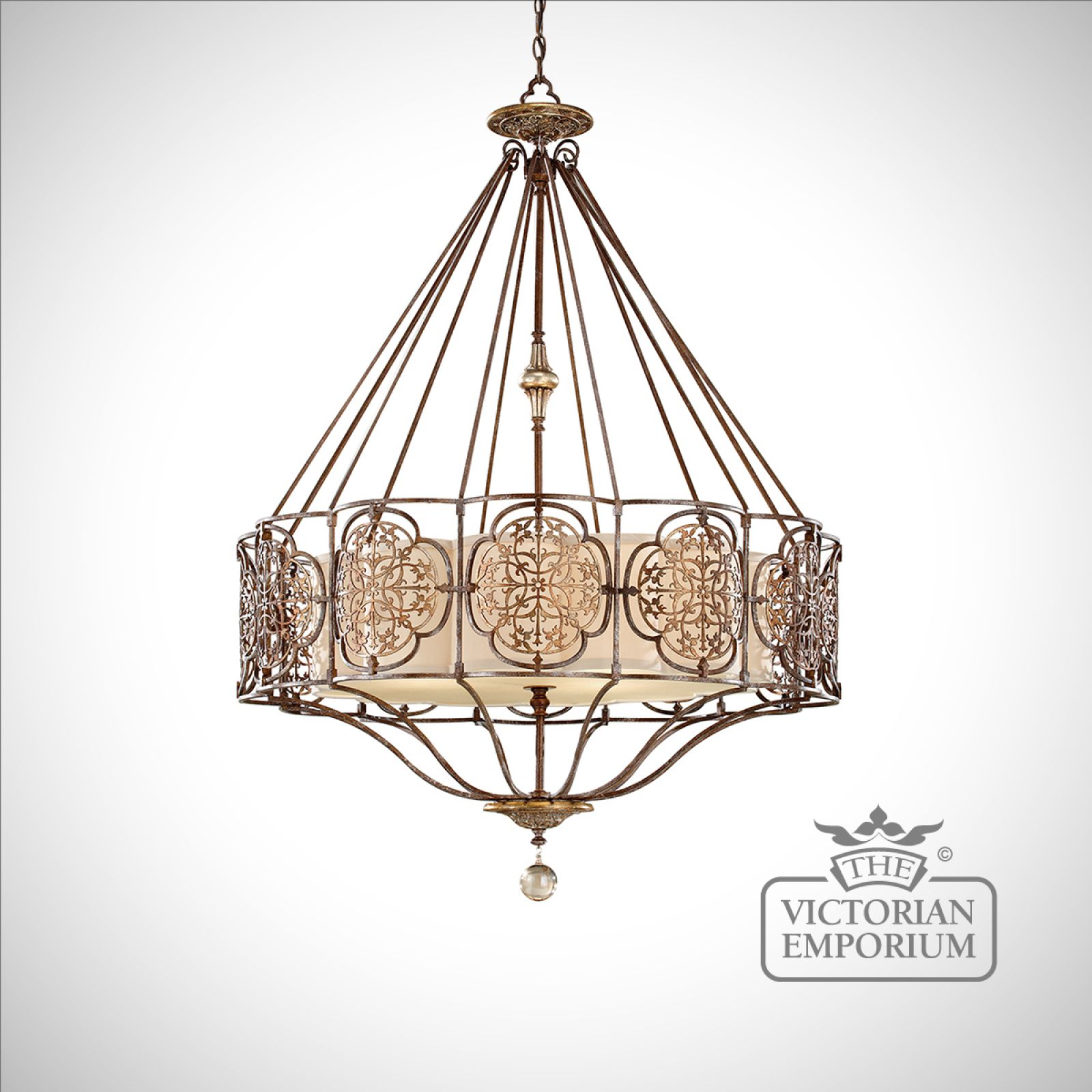 This fitting combines design elements from Prussia to Arabic art, with ornate filigree finished in hand applied bronze and gold patina with amazing attention to detail to impress