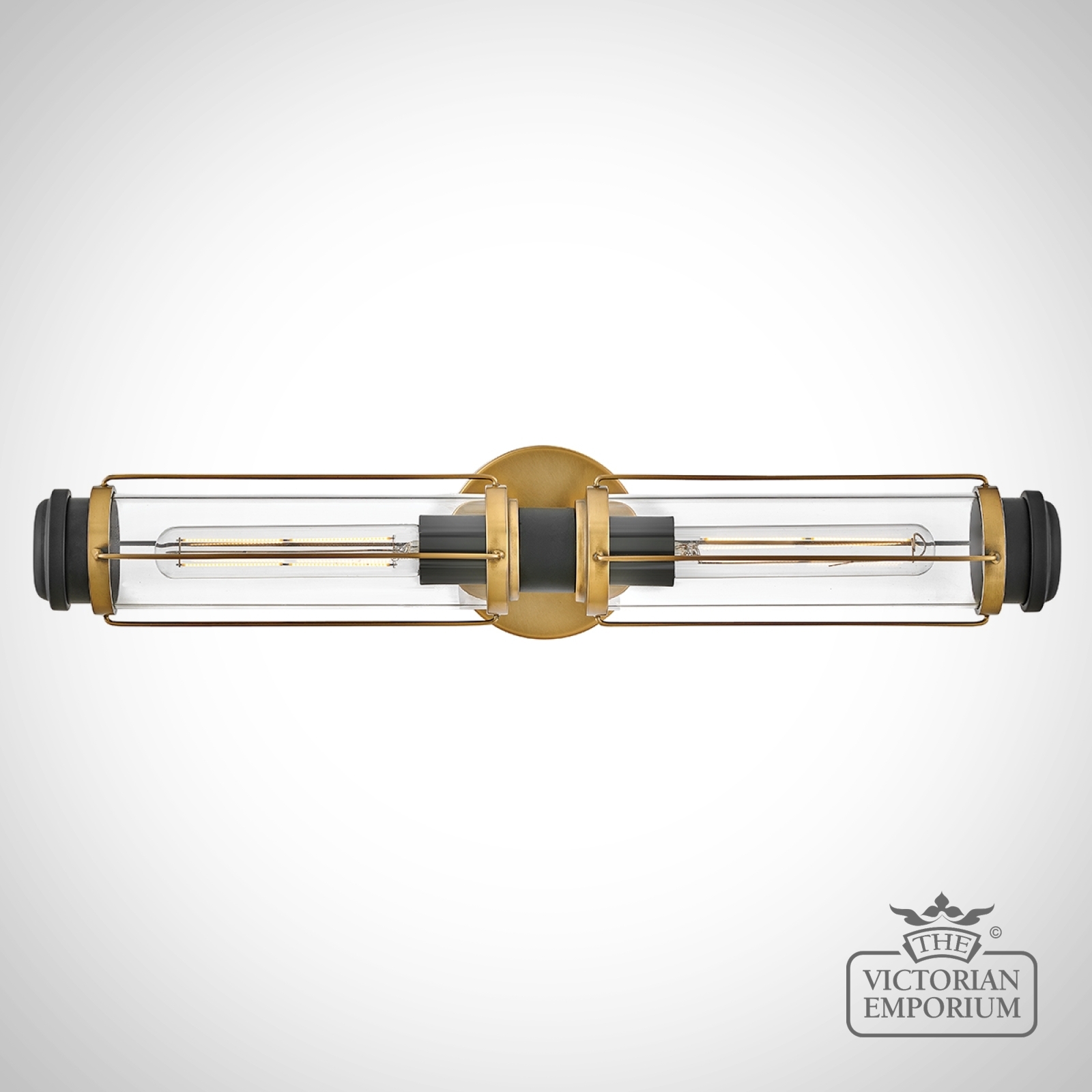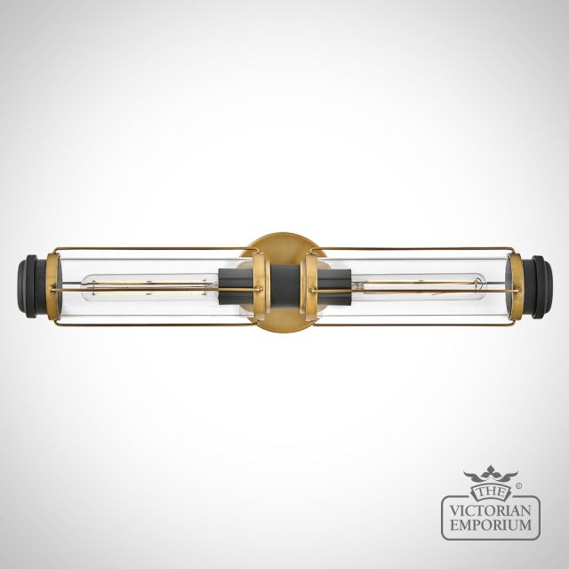 Masthead Two Light Bathroom Wall Light in Heritage Brass and Black