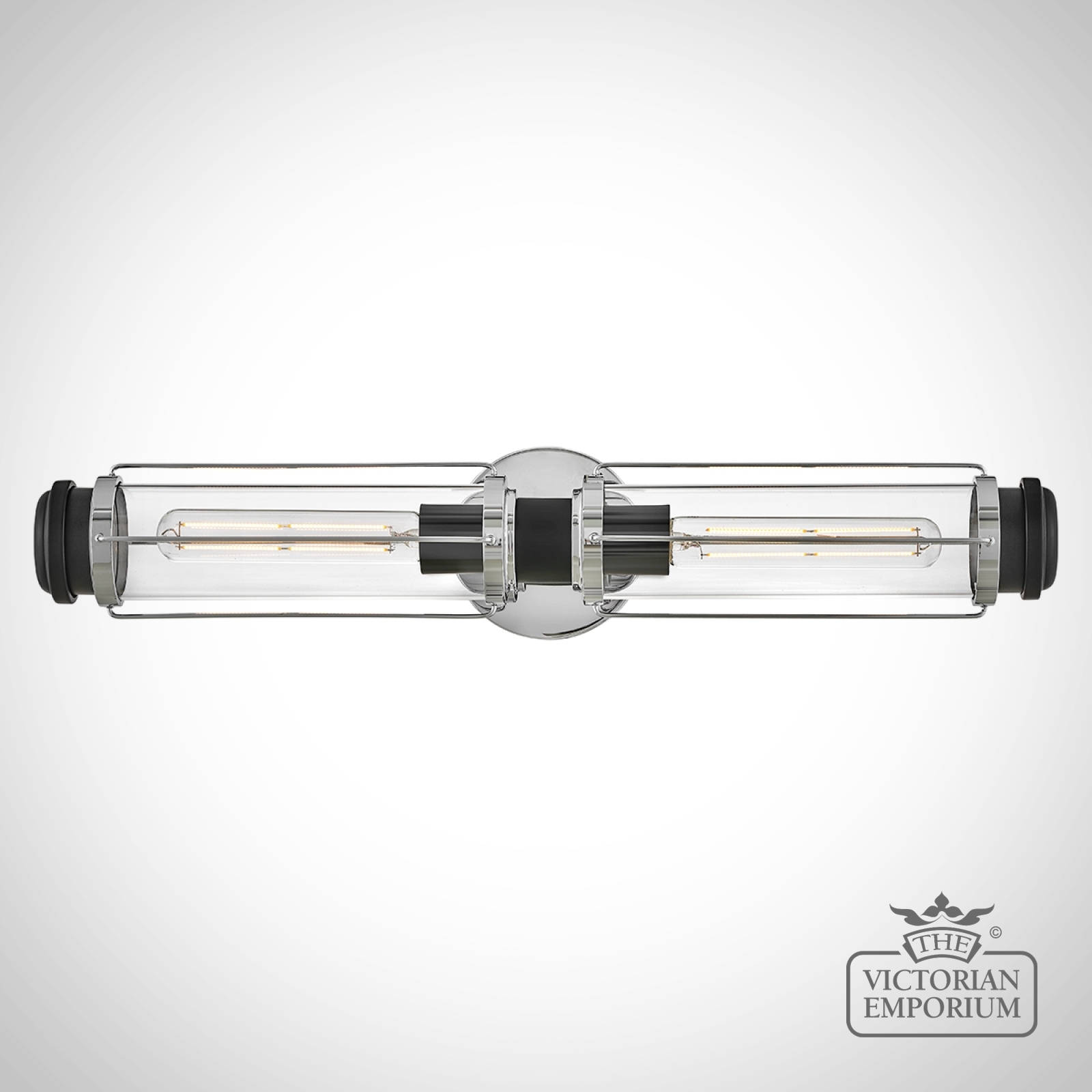 Masthead Two Light Bathroom Wall Light in Polished Chrome and Black
