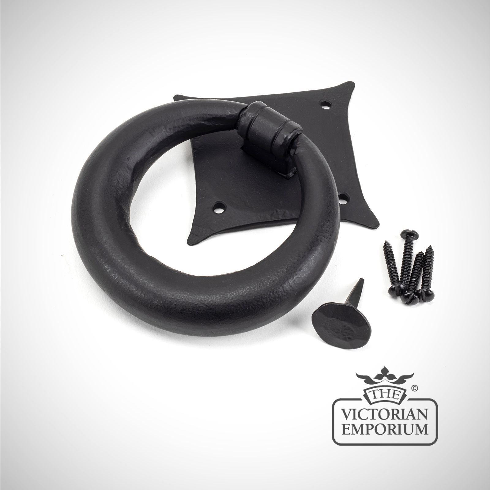 This ring door knocker has a bold rustic shape and style, and is surface fixed to the front of your door to provide an impressive centrepiece.