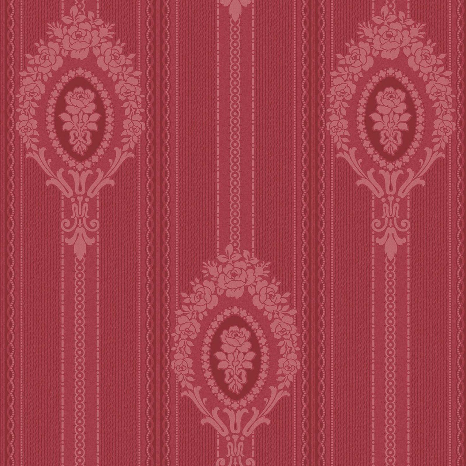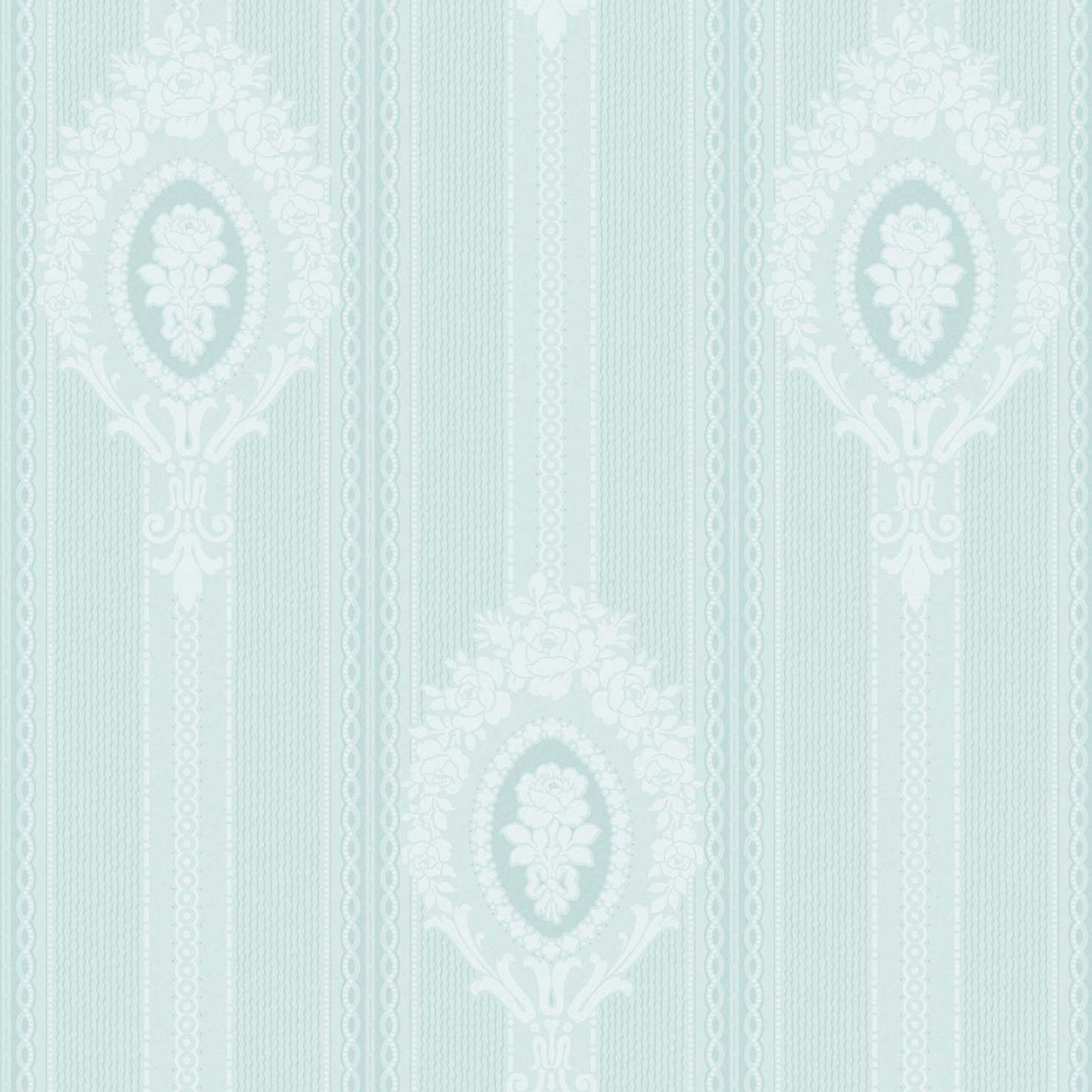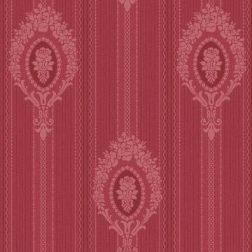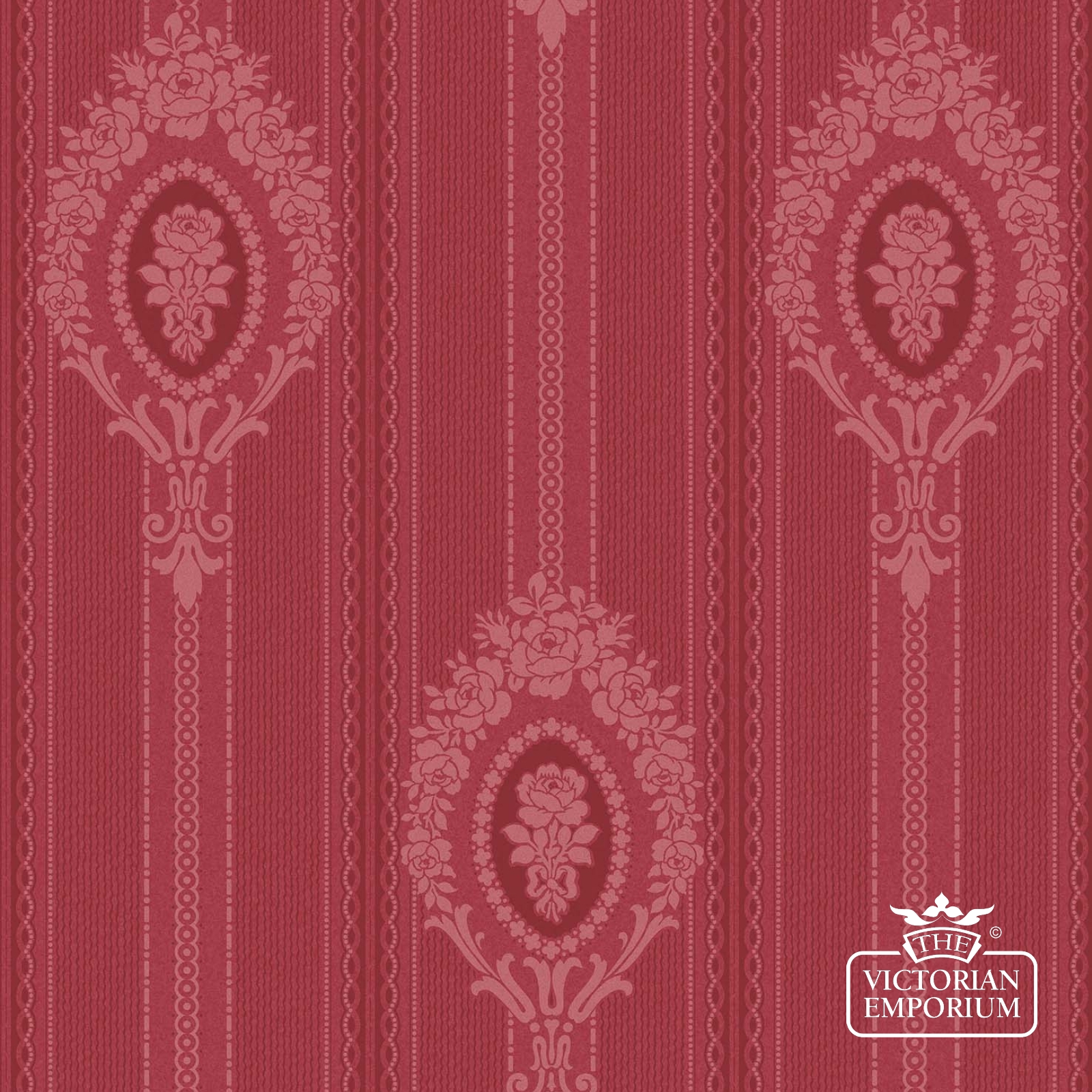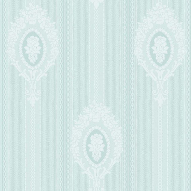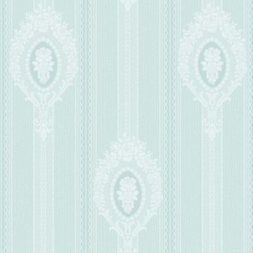 A pretty two tone wallpaper featuring a medallion type design with two tone stripes. This design would be suitable for a hallway, bedroom or bathroom.