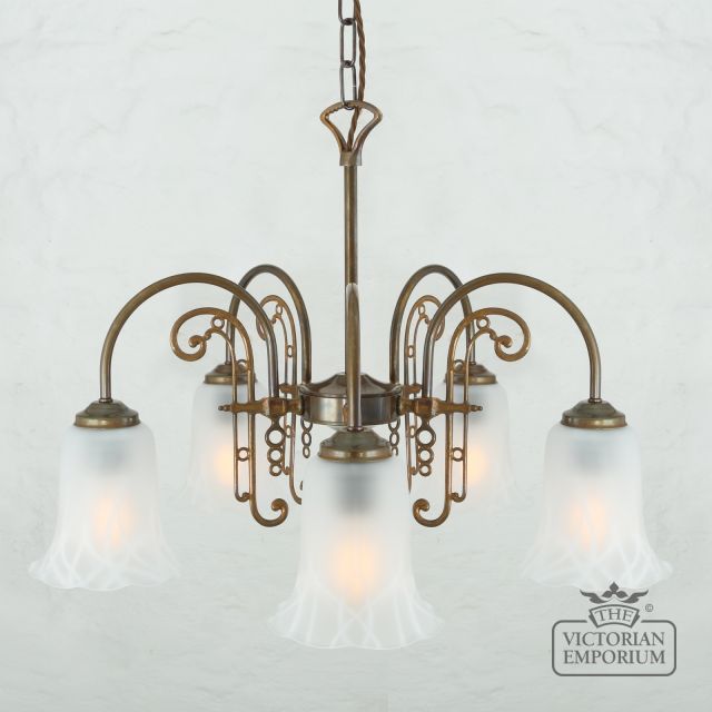 Medan Traditional Brass / Glass Chandelier, Five-Arm Ceiling Chandelier