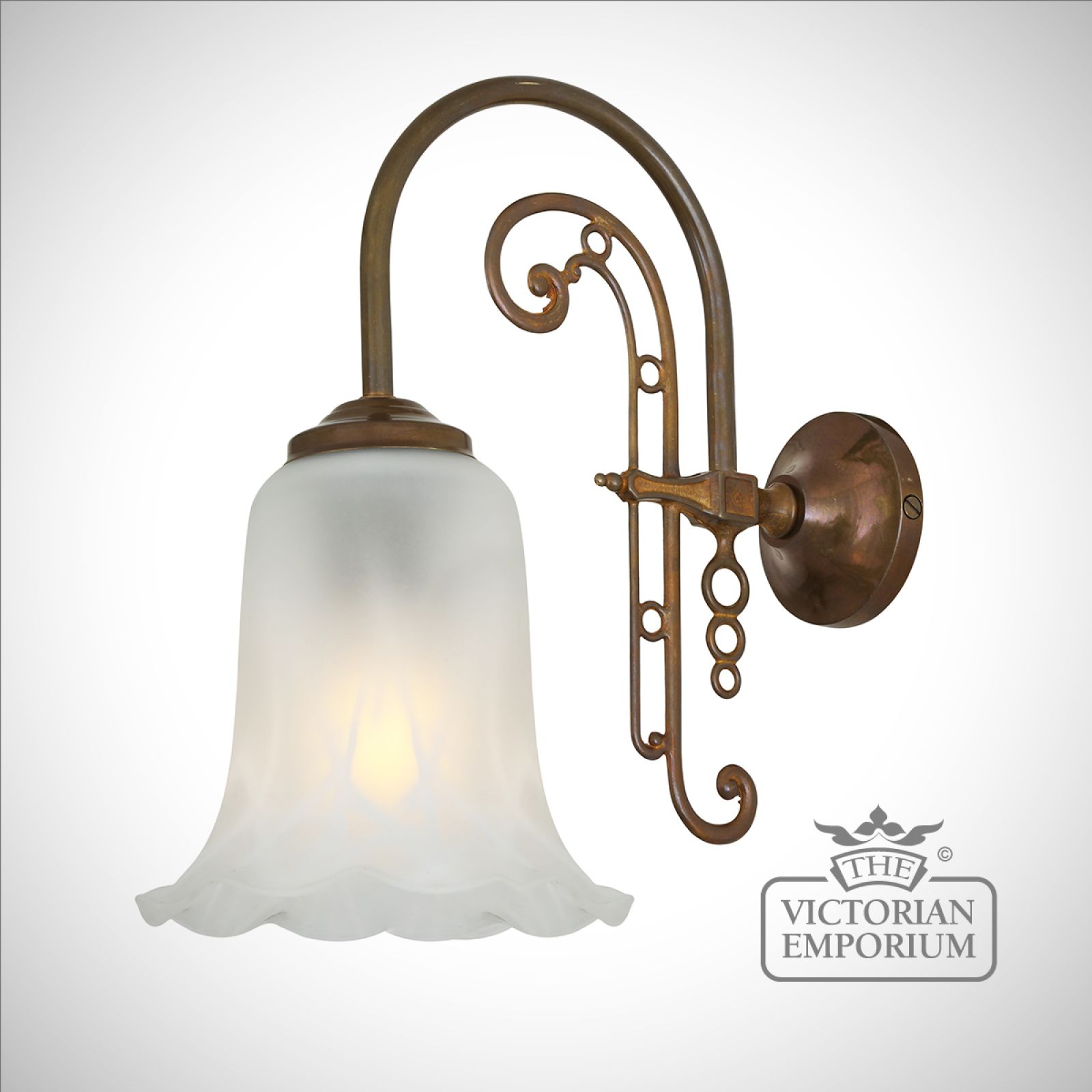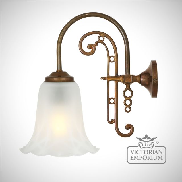 The Medan wall light is a very traditional fitting with a single swan-neck arm originating from a brass wall plate with an opal etched glass bell shade that softens and diffuses the light within.