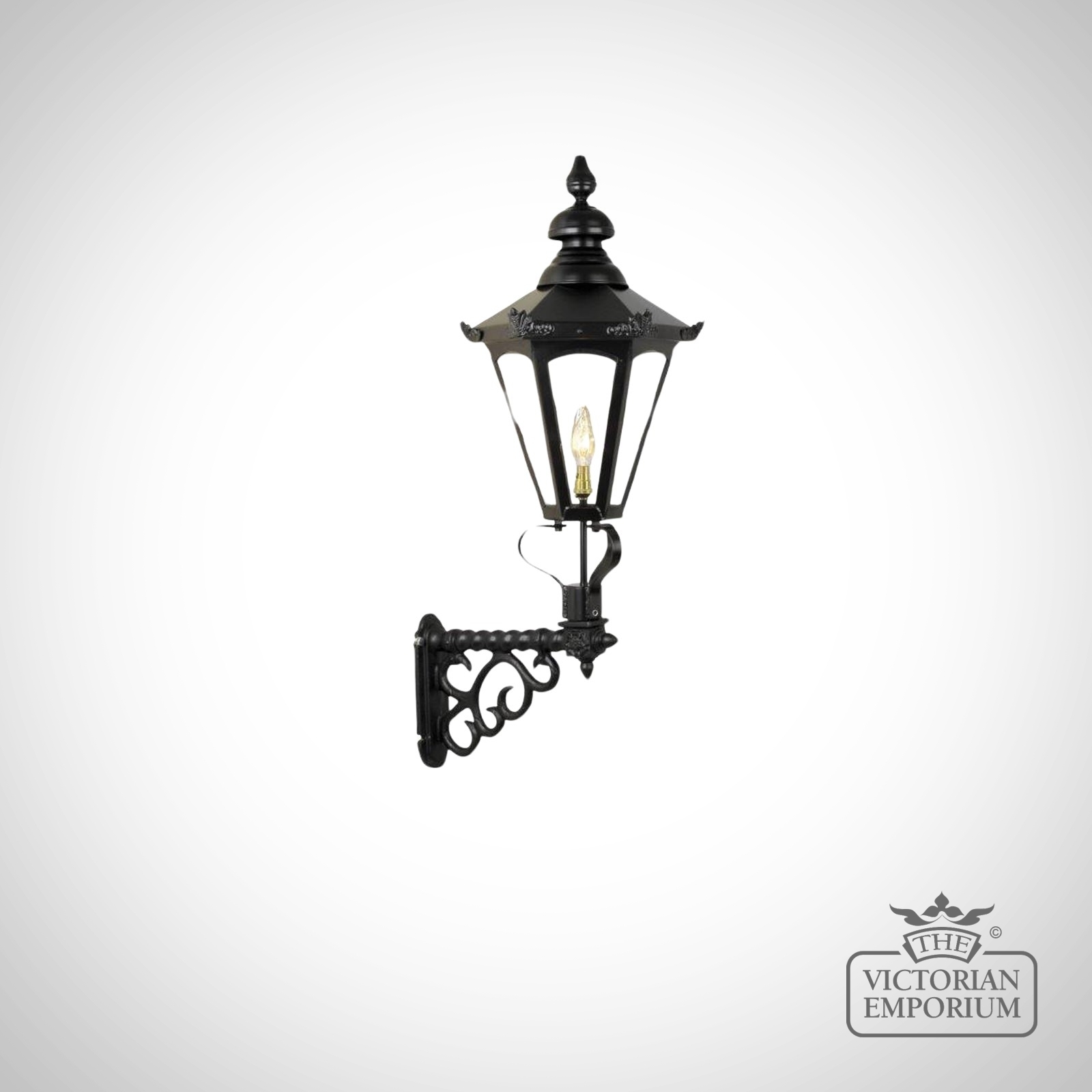 Medium hexagonal meridien steel lantern with large cast wall bracket