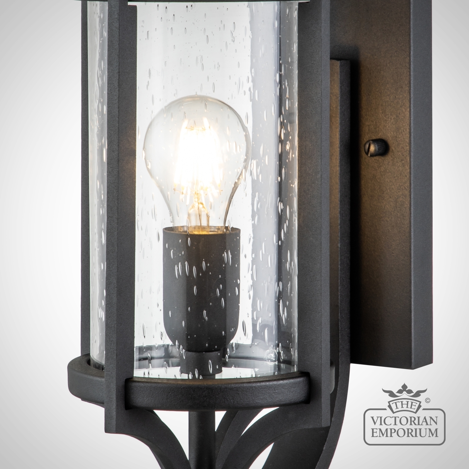 This heritage style wall light has a black finish with clear seeded glass and would look great on brick or stone houses