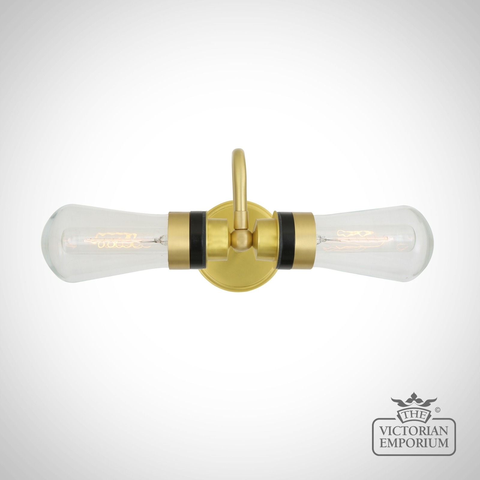 Designed in the shape of a tear drop, this wall light includes two clear glass shades and a gentle curved arm. It has an IP65 rating, which means it has a strong water resistance and could be used both outdoors and in bathrooms. This wall light looks great when lit with a warm bulb for soft lighting. Bulbs are sold separately.