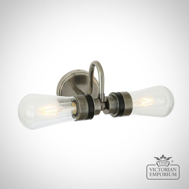 Designed in the shape of a tear drop, this wall light includes two clear glass shades and a gentle curved arm. It has an IP65 rating, which means it has a strong water resistance and could be used both outdoors and in bathrooms. This wall light looks great when lit with a warm bulb for soft lighting. Bulbs are sold separately.
