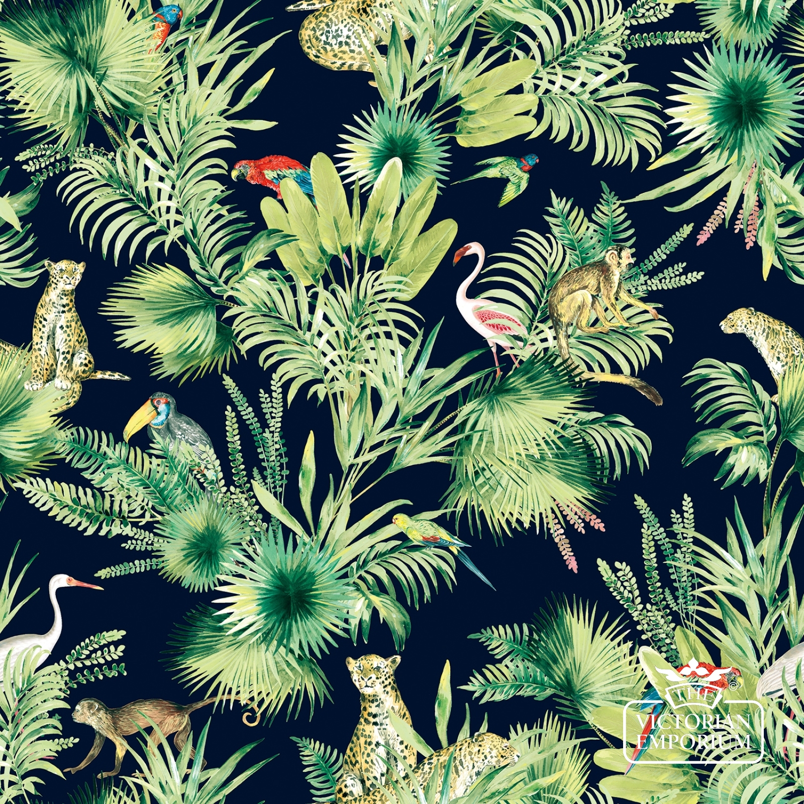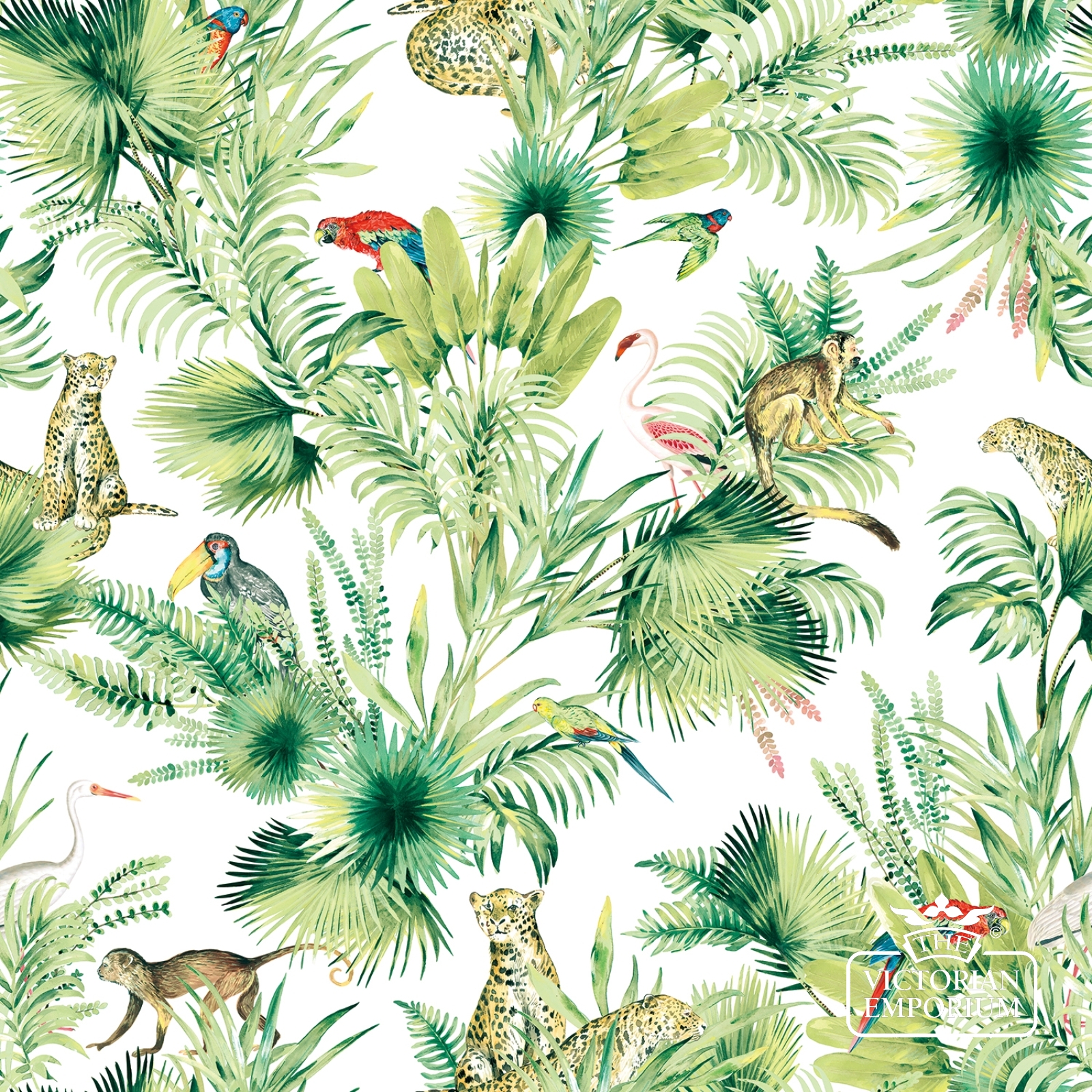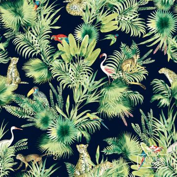 A really stunning fabric from the Tropical Velvets collection featuring exotic parrots, tigers, monkeys and birds and green leafy plants in vibrant colours. These velvets are screen printed and will provide a centrepiece to any room.