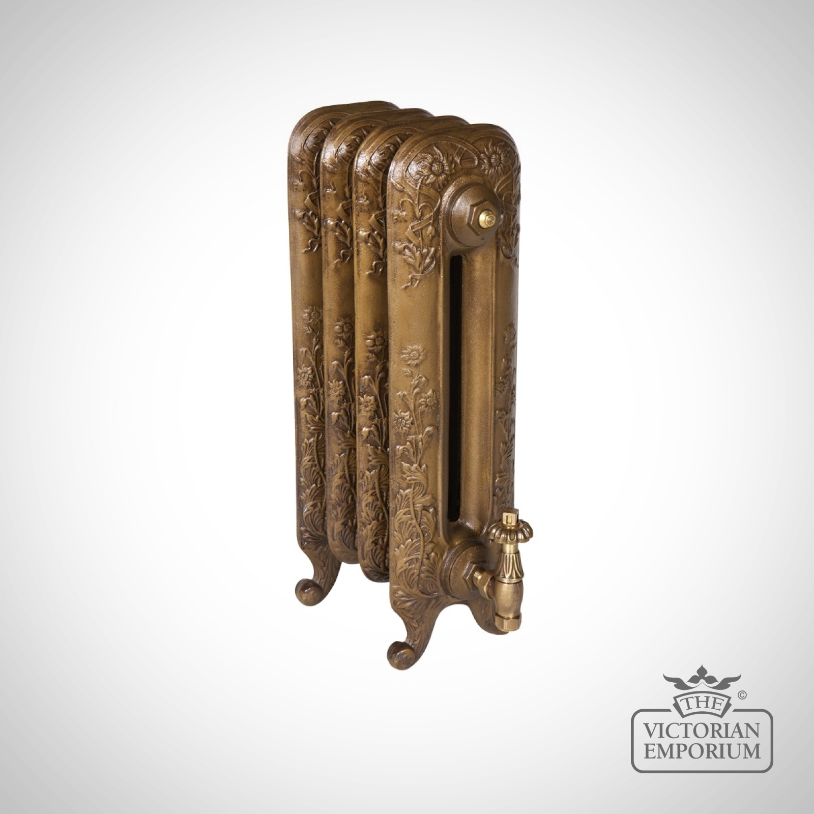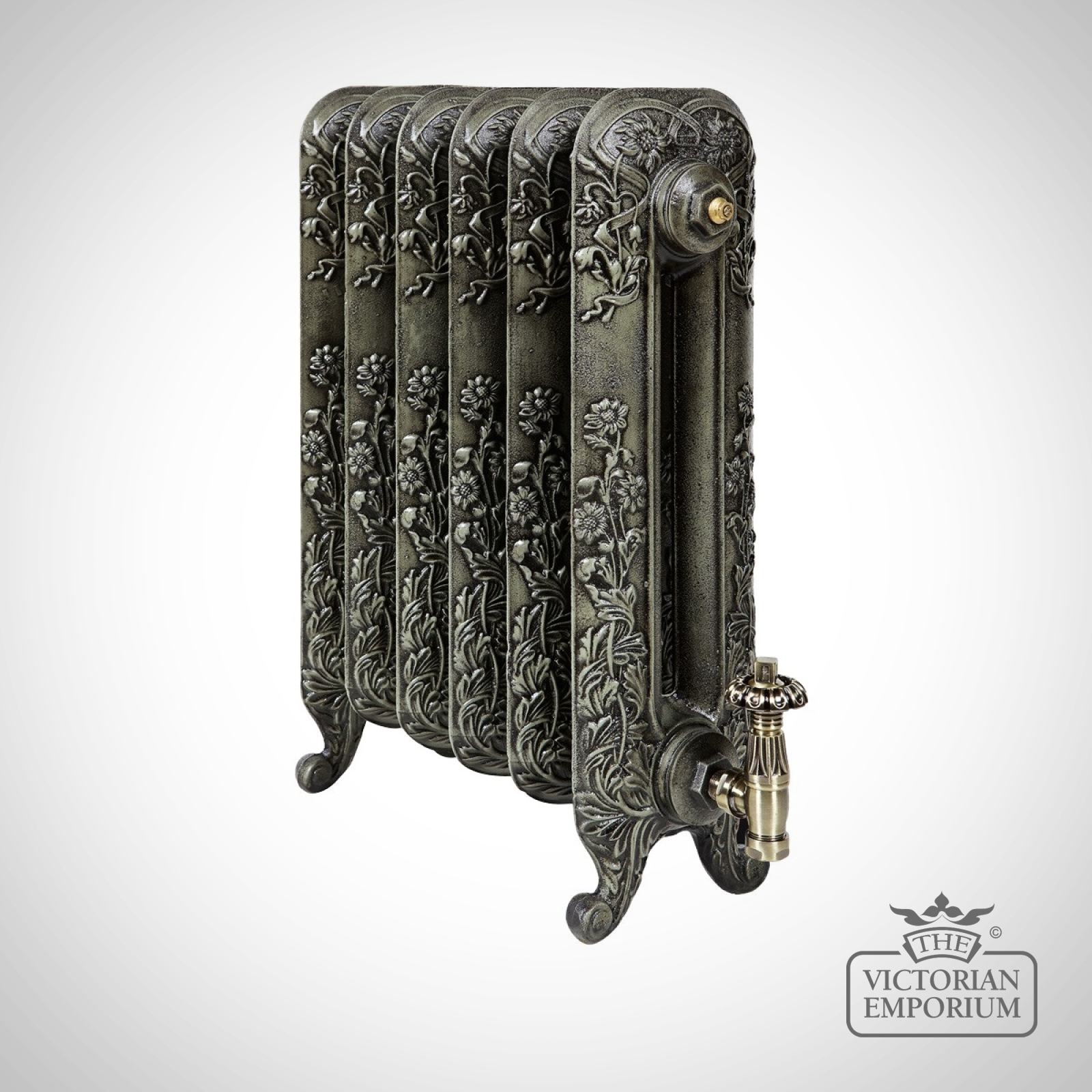 The vintage style radiator depicts an eye catching floral design flowing from the ornate foot to the crown of this very attractive Victorian radiator. The Toulouse is a free standing radiator available in a choice of 590mm and 740mm heights. Widths available from 315mm to 2151mm.