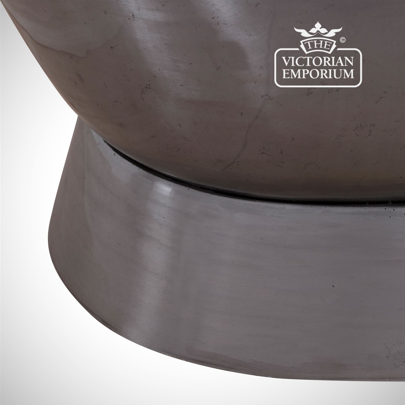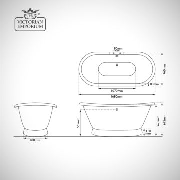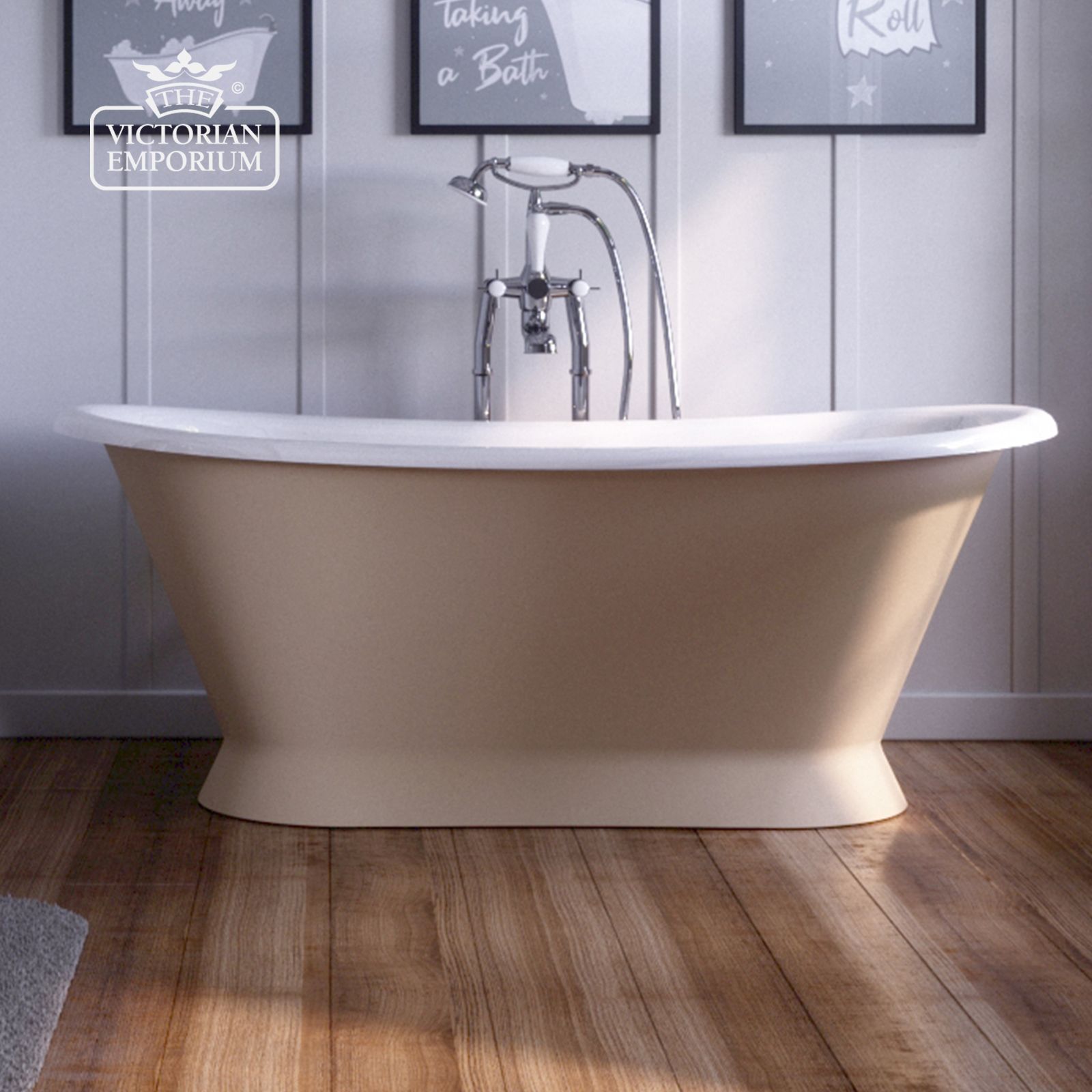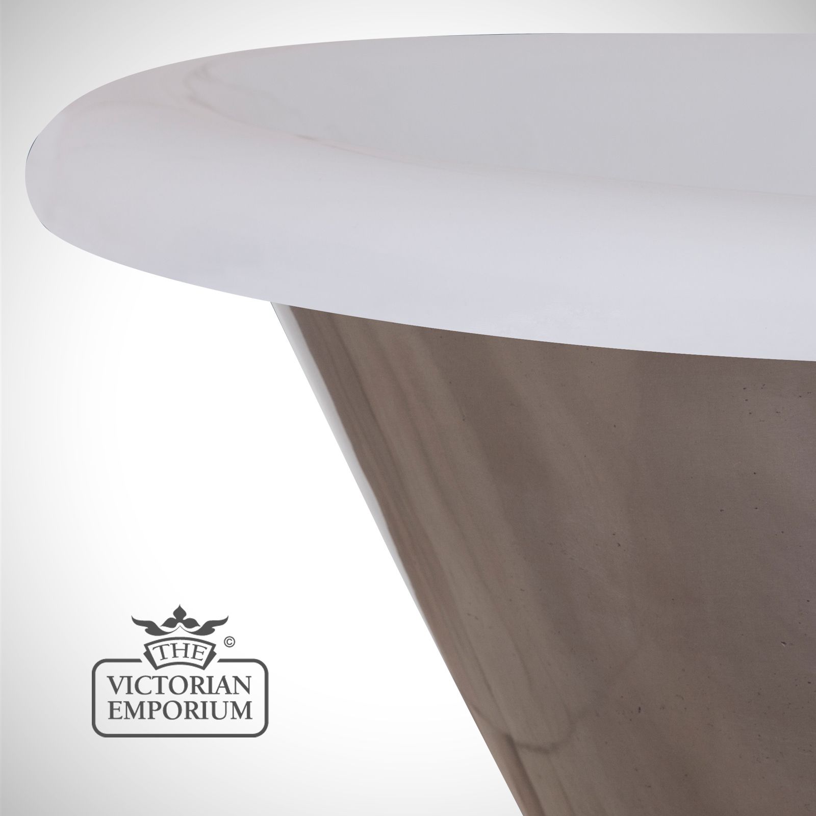 Large pewter lustre cast iron bath without tap holes. This is a less shiny finish than traditional polished or nickel baths.