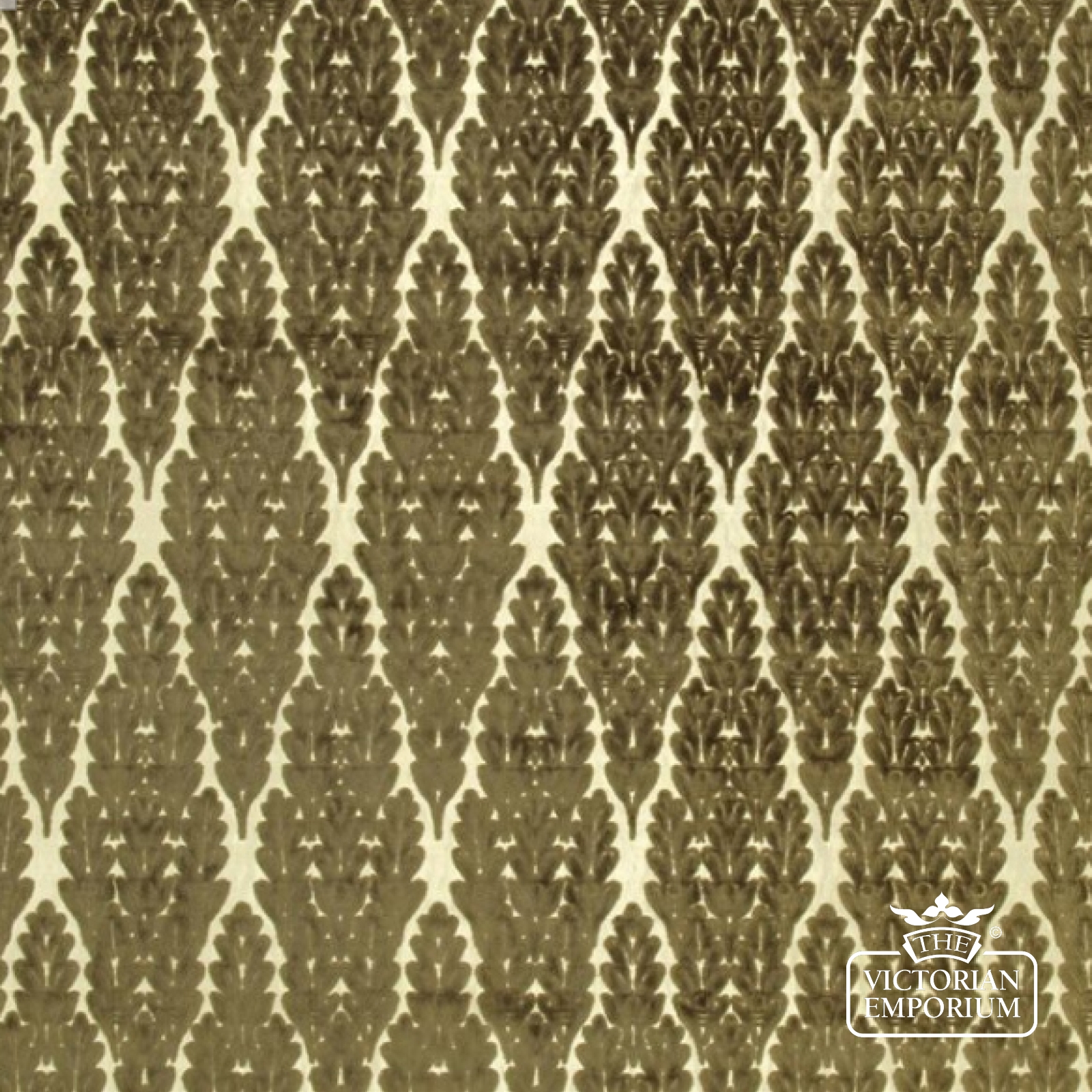 A cut velvet inspired by a formal silk damask design originally in the Throne Room at Buckingham Palace.