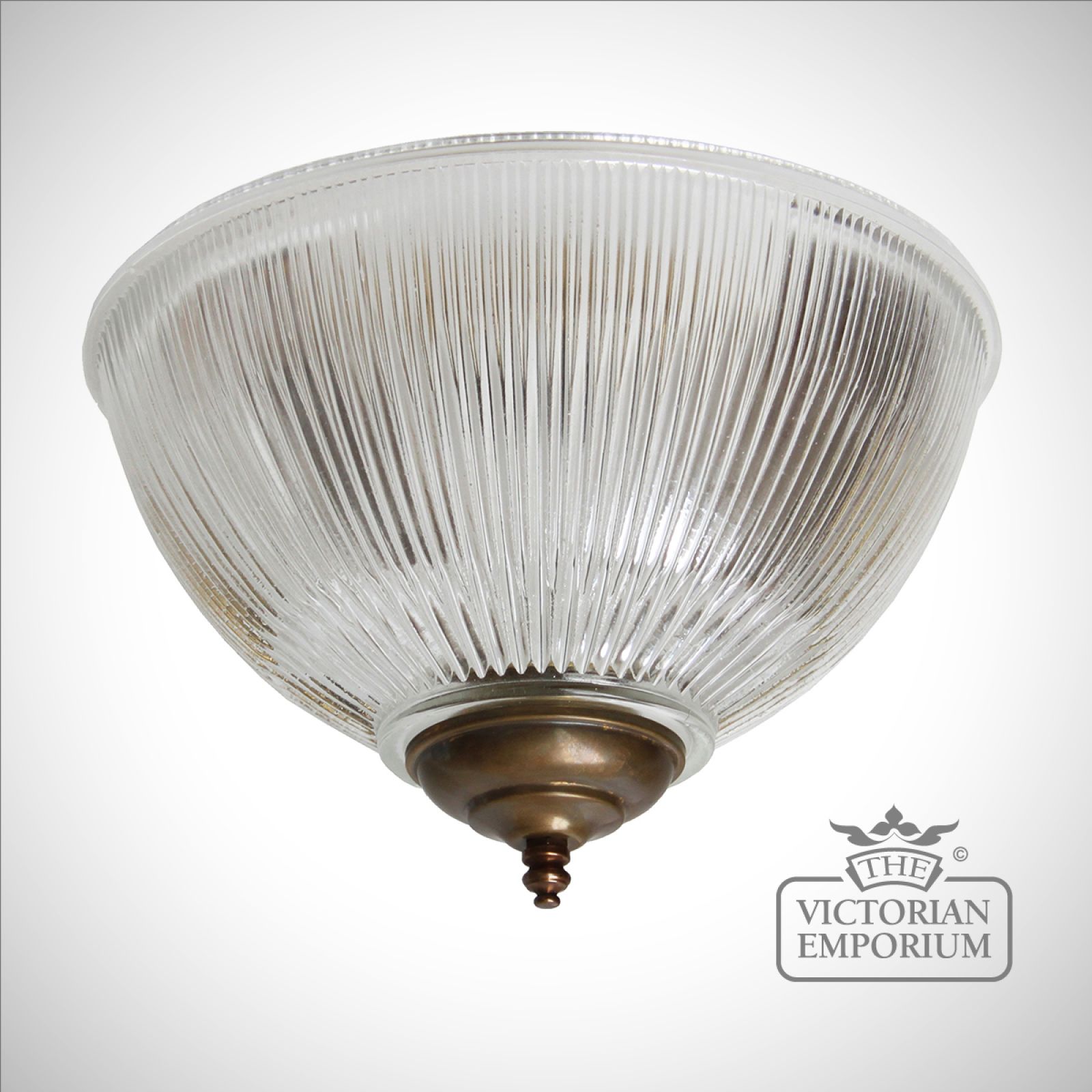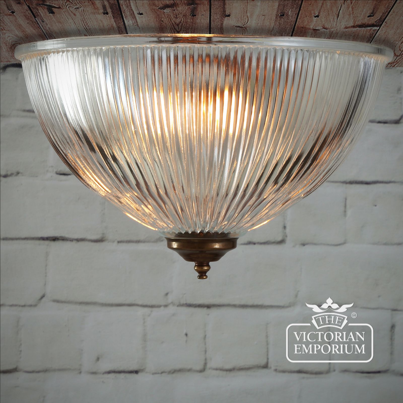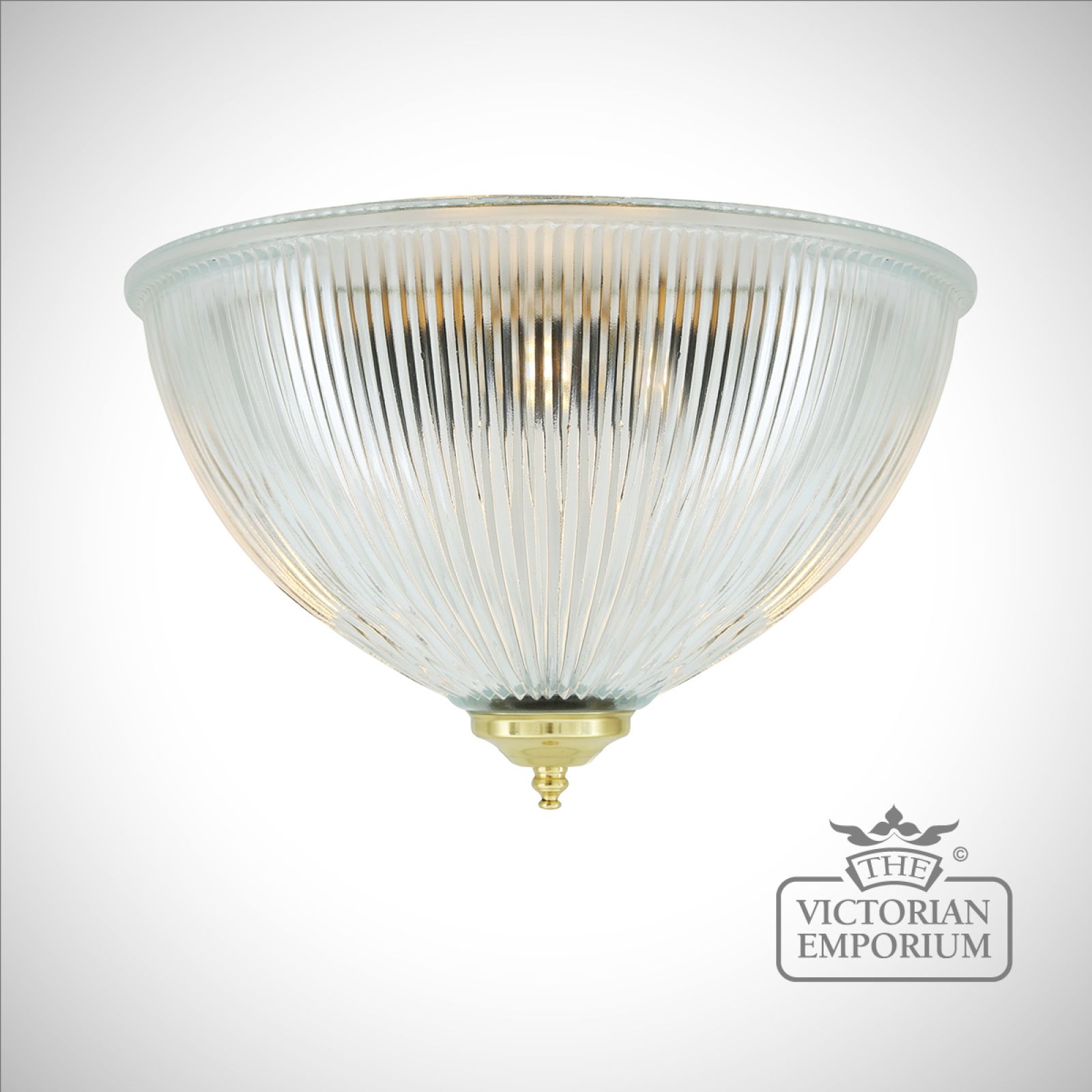 This flush ceiling light has a prismatic glass shade that creates a particularly pretty light pattern when diffused on the ceiling