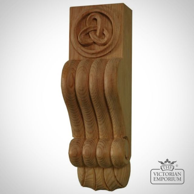 Beautifully proportioned, hand carved, narrow celtic fireplace corbel sold as a matched pair in pine