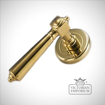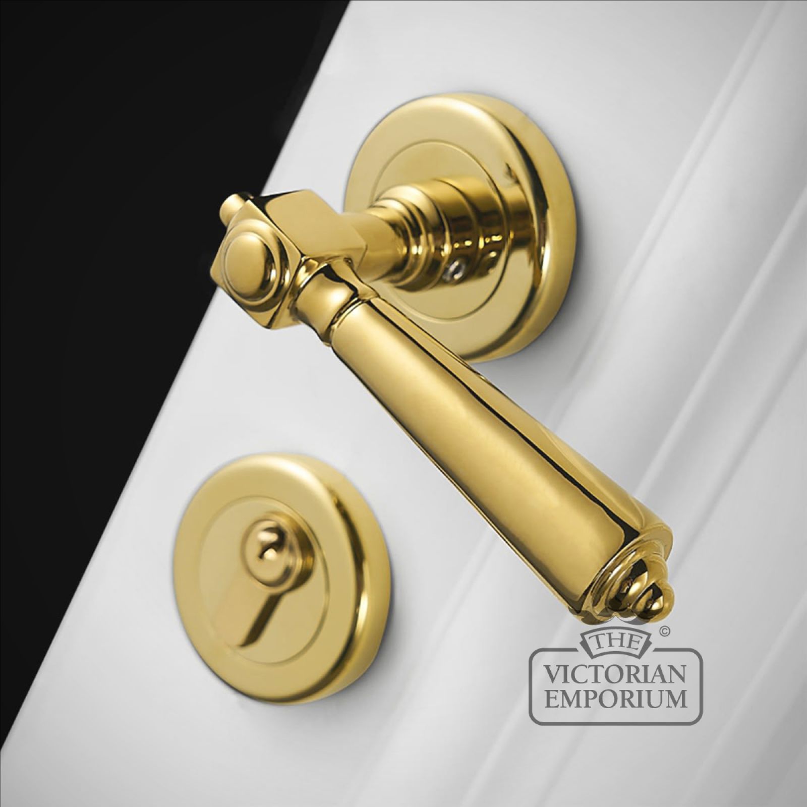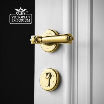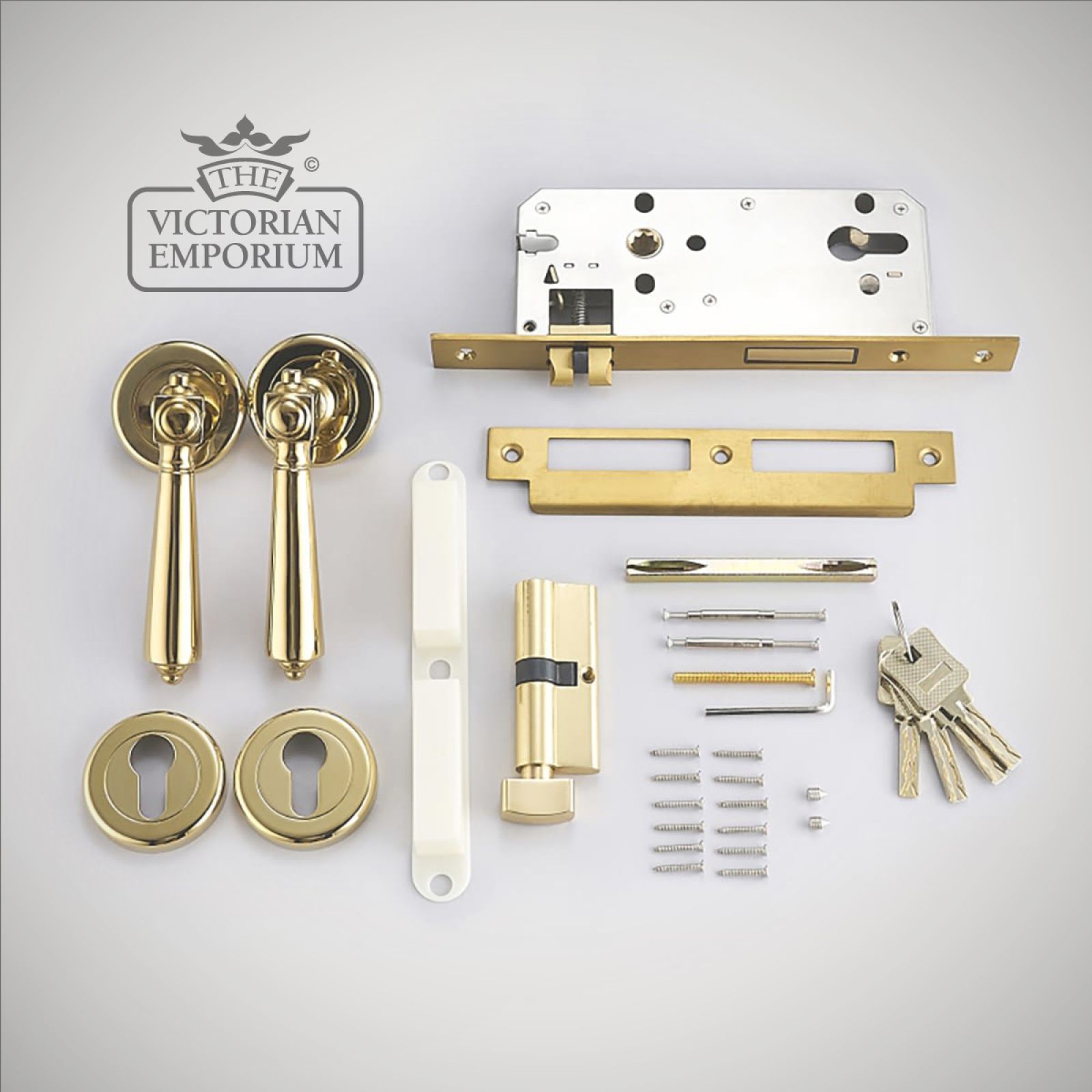 A set of two traditional solid brass door handles supplied with lock body and lock cylinder (full set) - everything you need to close and lock your door and for it to look smart.