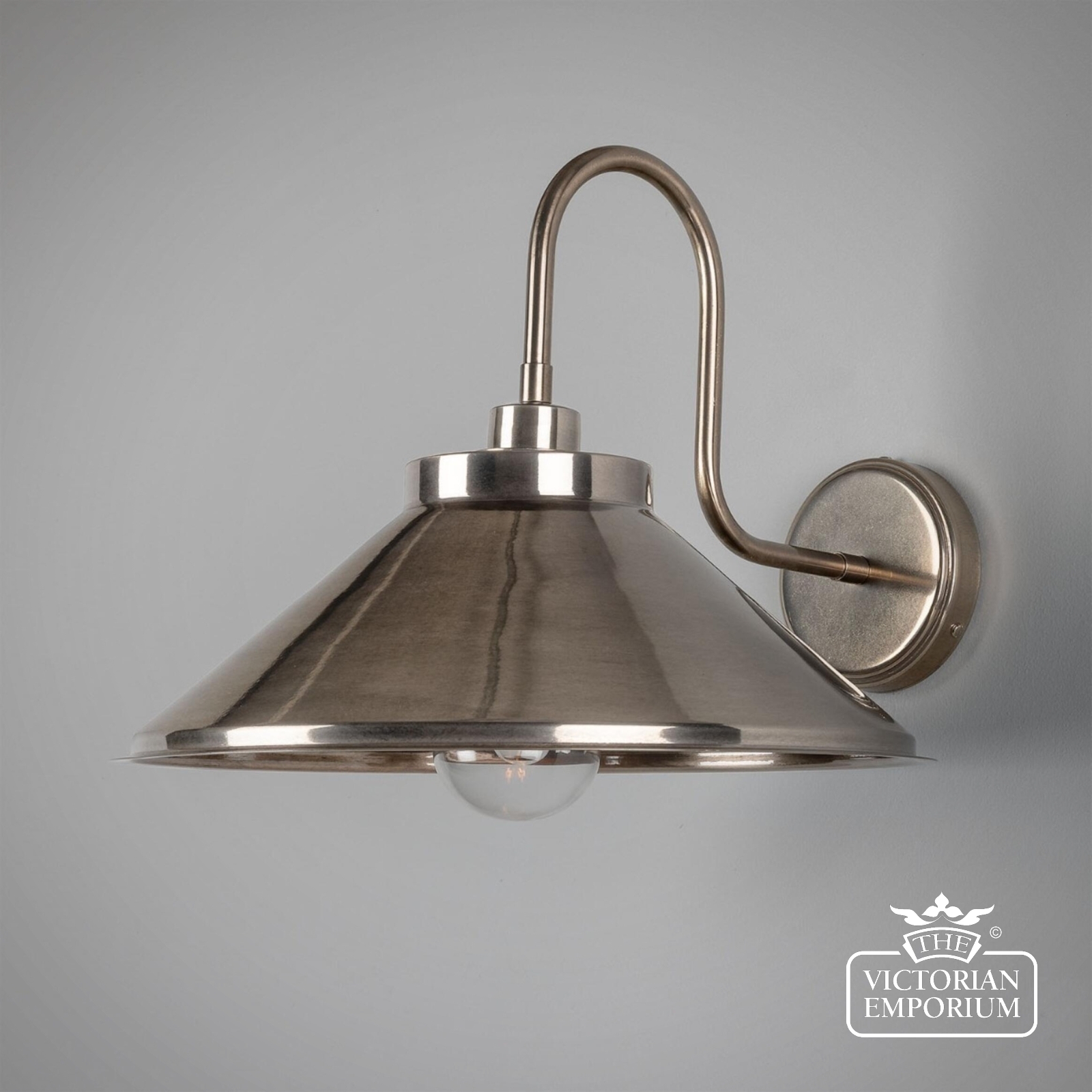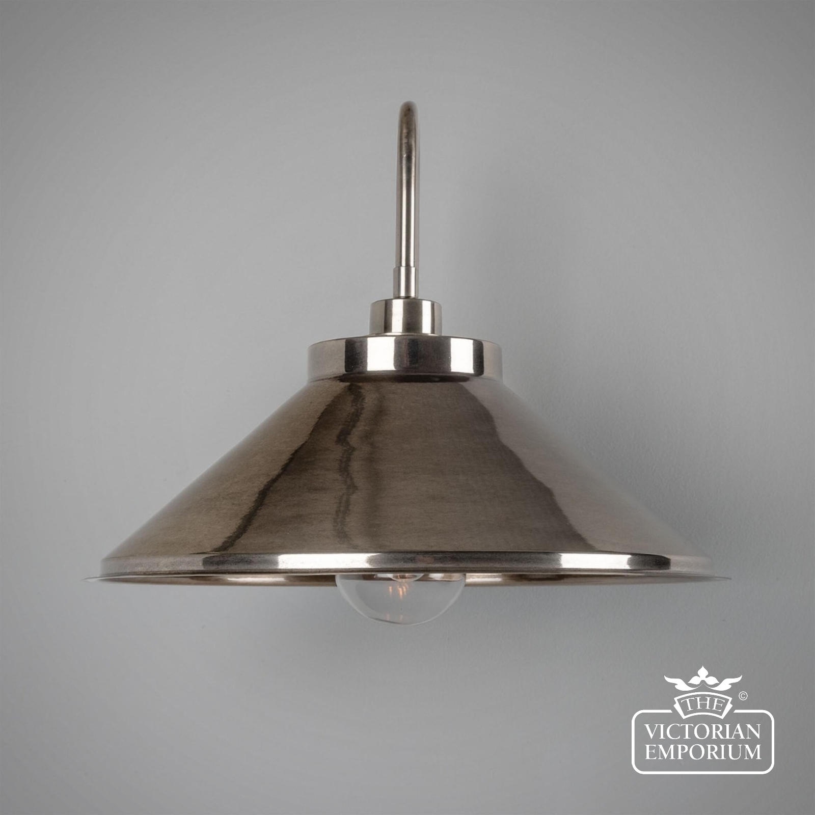 This swan neck wall light has a IP65 rating, which means it has a strong water resistance and could be used both outdoors and in bathrooms. Looks great when lit with a warm bulb for soft ambient lighting. Bulbs are sold separately.