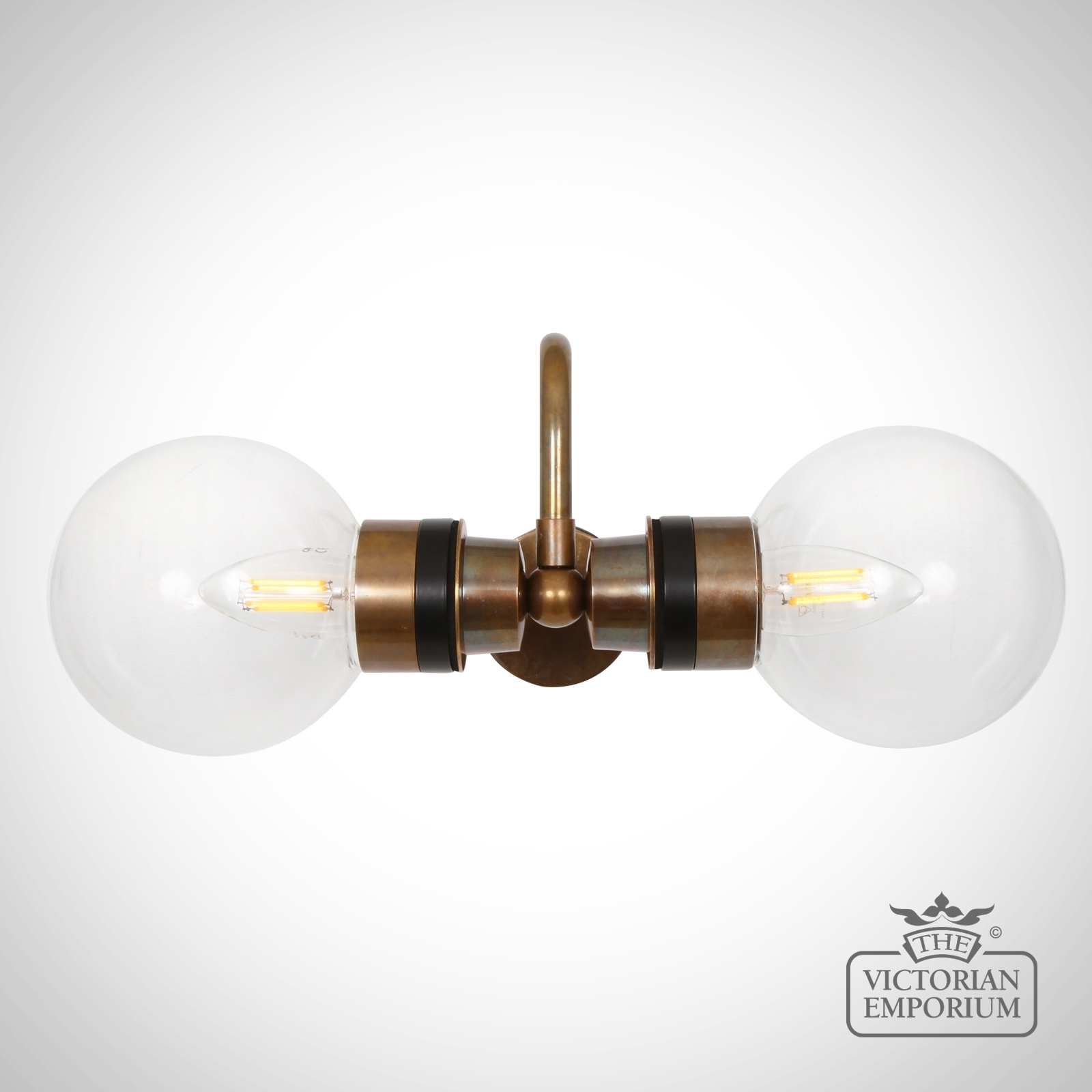 Ness Double Glass Globe Bathroom Wall Light with Swan Neck IP65