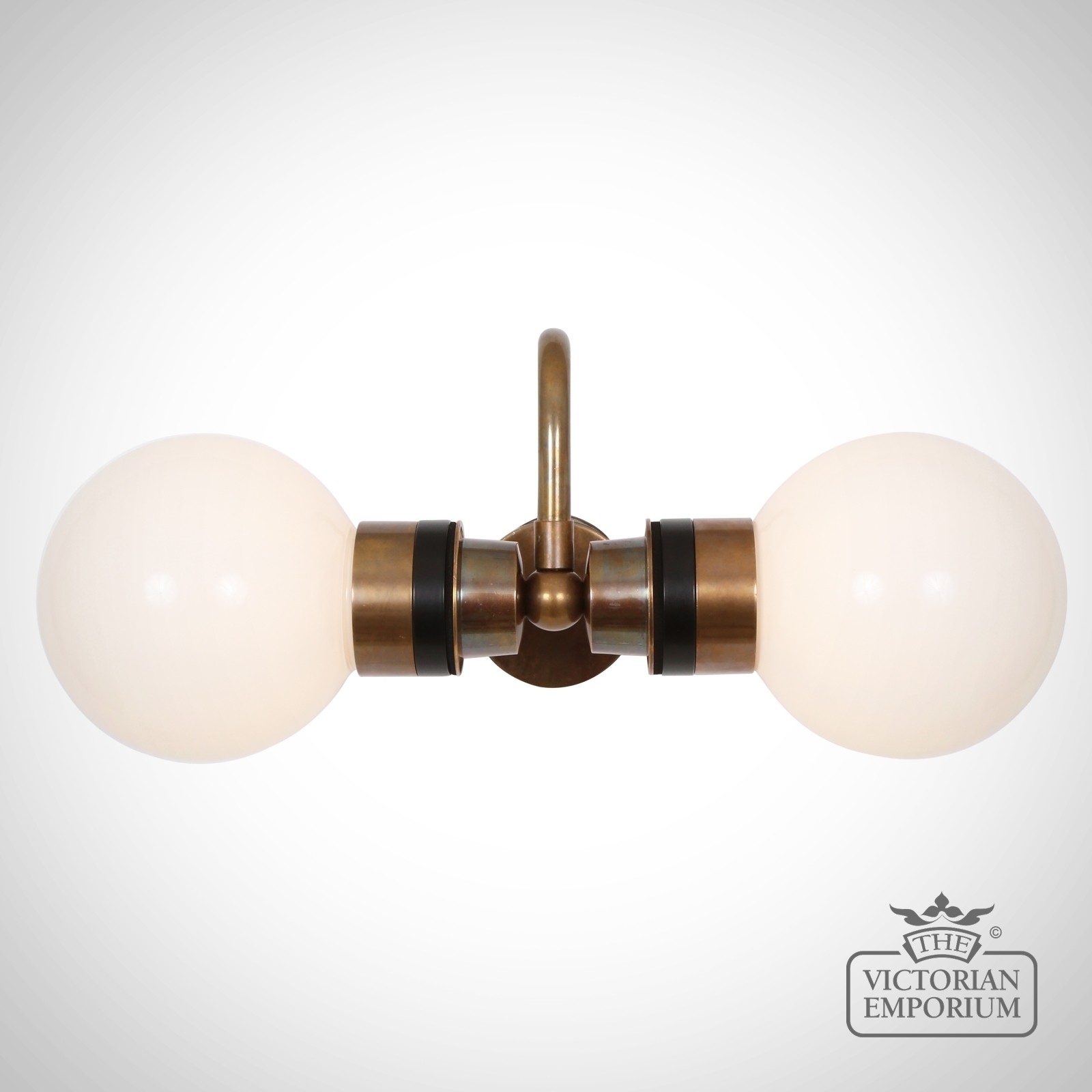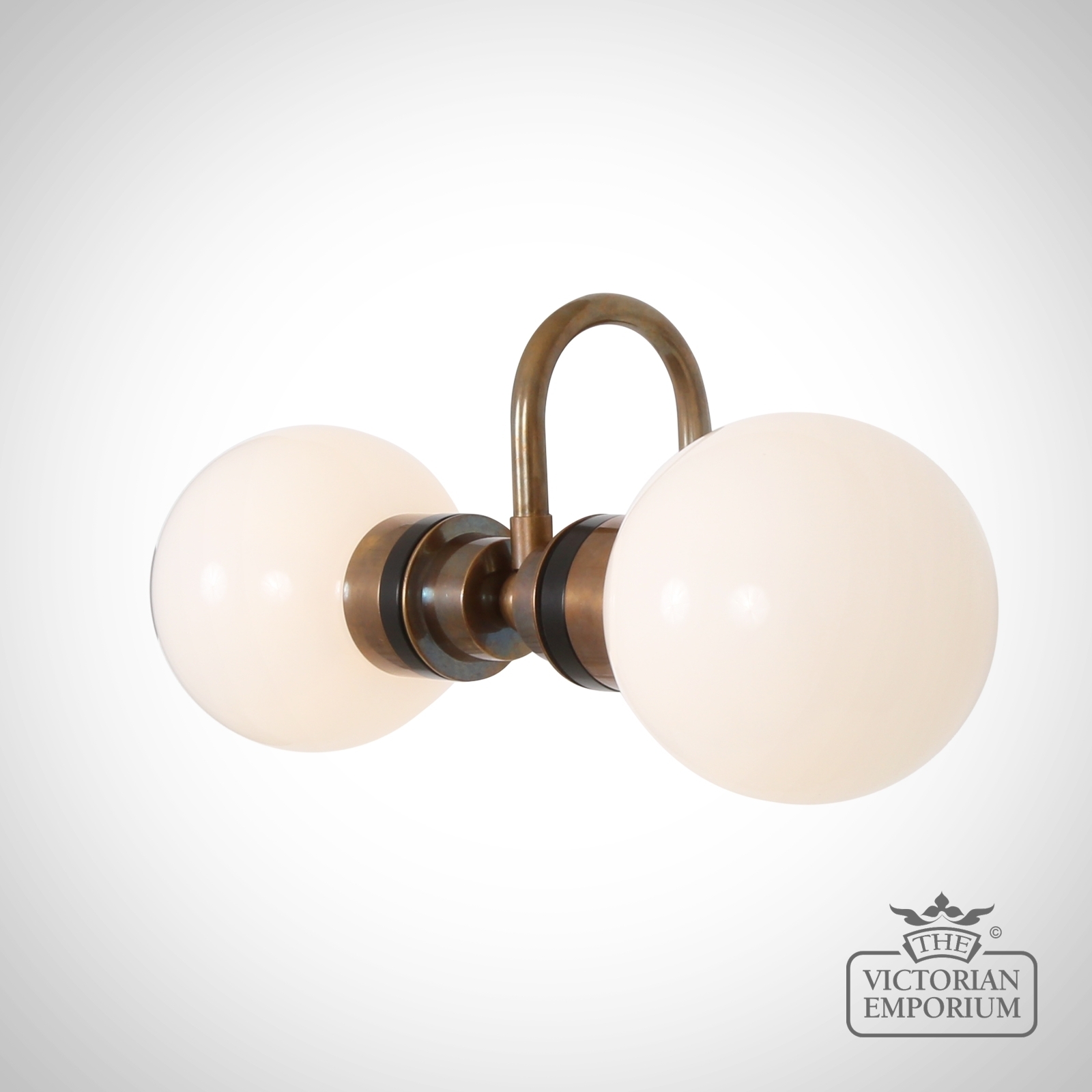 The Ness double glass globe bathroom wall light features clean-lines and a minimal design. Featuring two beautiful glass globes shades available in clear, opal or prismatic, this bathroom wall light adds an elegant touch to interiors.