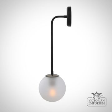 The New Port is a simple glass globe wall light featuring a circular wall bracket from which a brass sleeve protrudes, then turns 90° towards the floor, ending in a glass globe in a choice of glass styles.