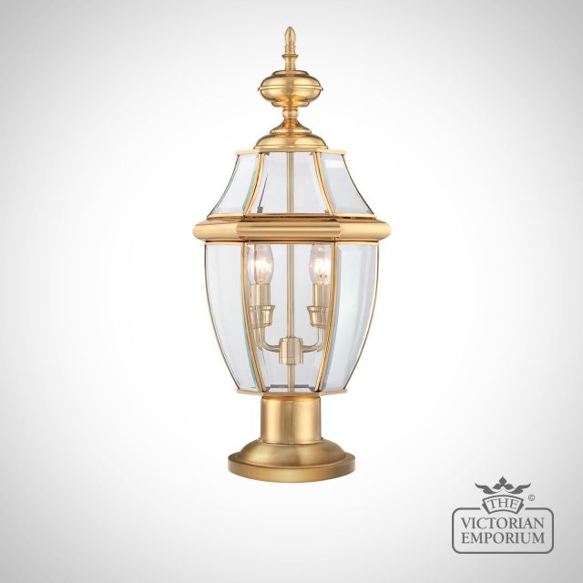 This is a beautiful brass pedestal lantern with a classic design featuring bevelled glass.​