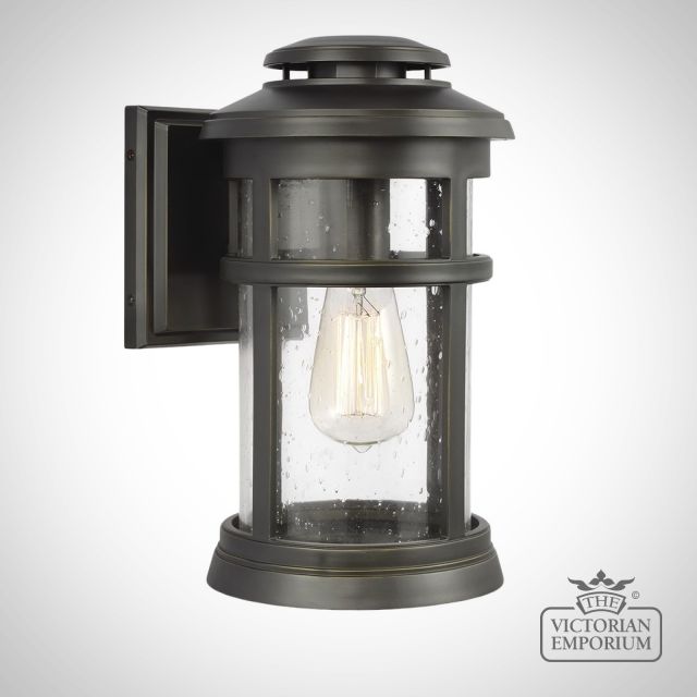 The Newport outdoor lantern has a vented top inspired by lighthouse designs, made of a unique synthetic composition that is tough enough to withstand harsh weather conditions, a great choice for Coastal locations.