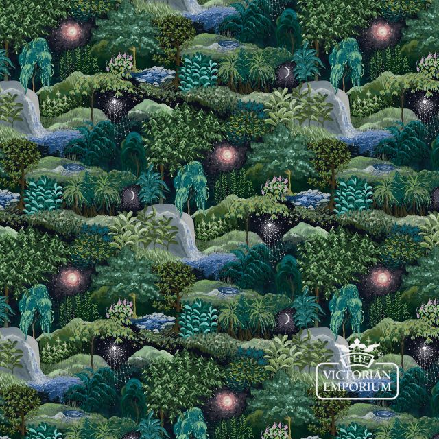 Stunning wallpaper that depicts a fantasy forest; bold, beautiful and unworldly. Hand painted on black for added depth, this design is perfect for those wanting to make a bold statement.