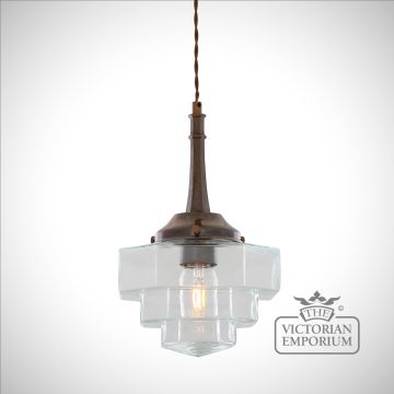 Novato Pendant with Hexagonal Stepped Glass Shade