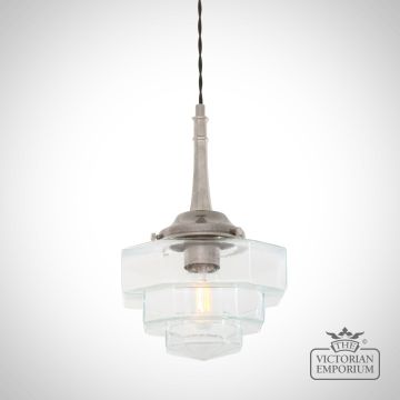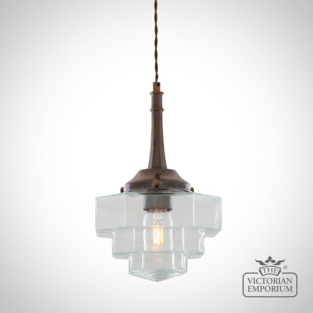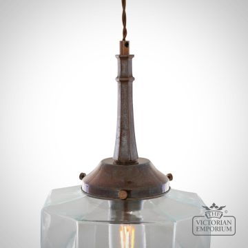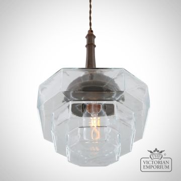 Novato Pendant with Hexagonal Stepped Glass Shade