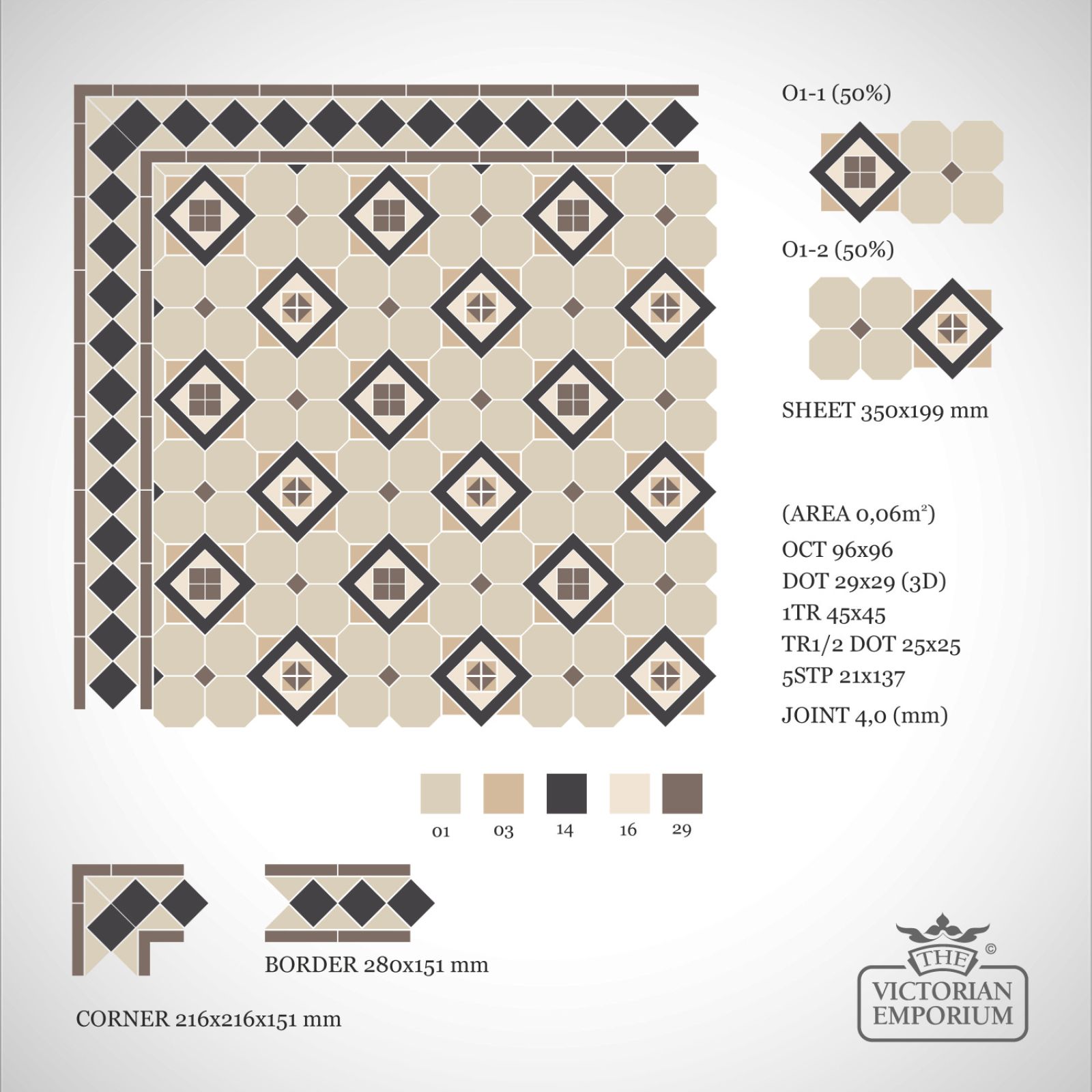Incorprating a tessellated design consisting of squares, rectangles and triangles. Centre pattern consists of Sheet O1-1 and O1-2.