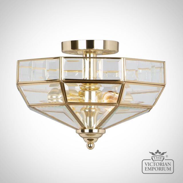 A range of semi-flush ceiling fittings, ideal for low ceilings and hallways. Made mostly from solid brass, Old Park is available in Polished Brass, Polished Nickel or Antique Brass finishes