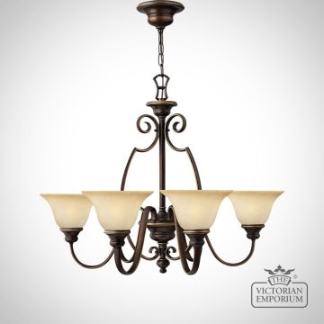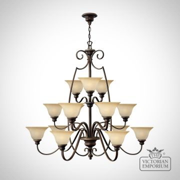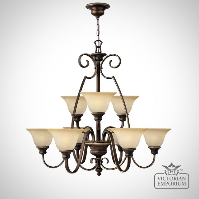 Classic old bronze chandelier with 9 lights. Matches our other Old Bronze interior lights