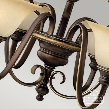 This is a traditional large 9 light chandelier suitable for any room with beautiful antique highlights and faux alabaster glass.