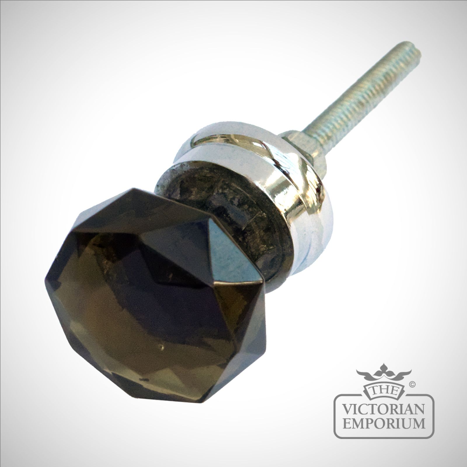 A small cut crystal knob in an olive shade, a wonderful choice for cabinetry in kitchens, bathrooms and living rooms
