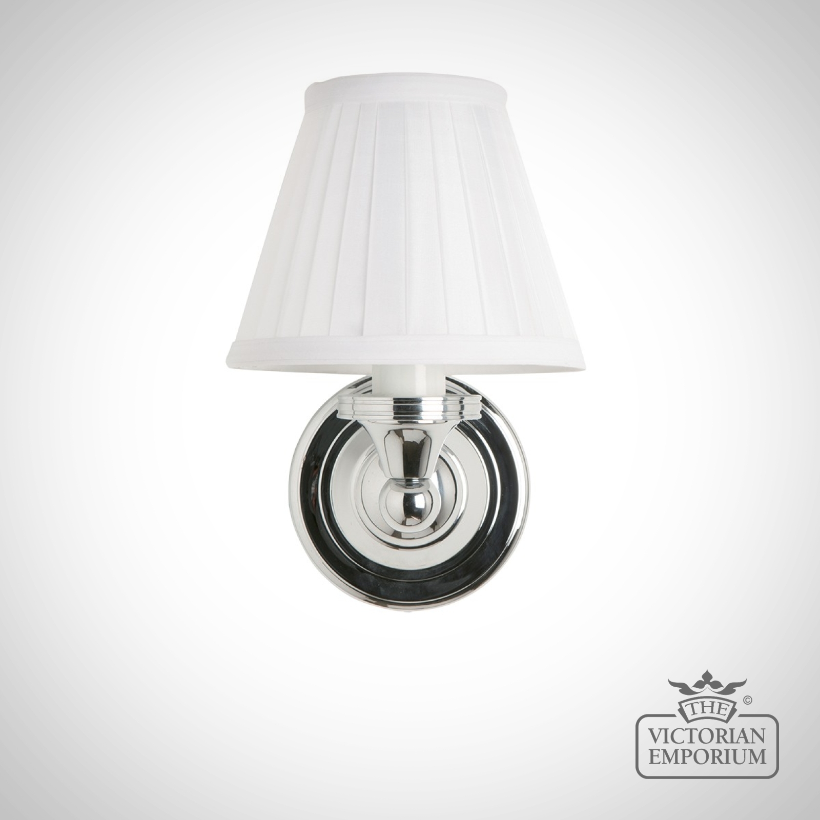 Solid Brass Fitting, Chrome plated light with fine pleated shade in white with a classic profile.