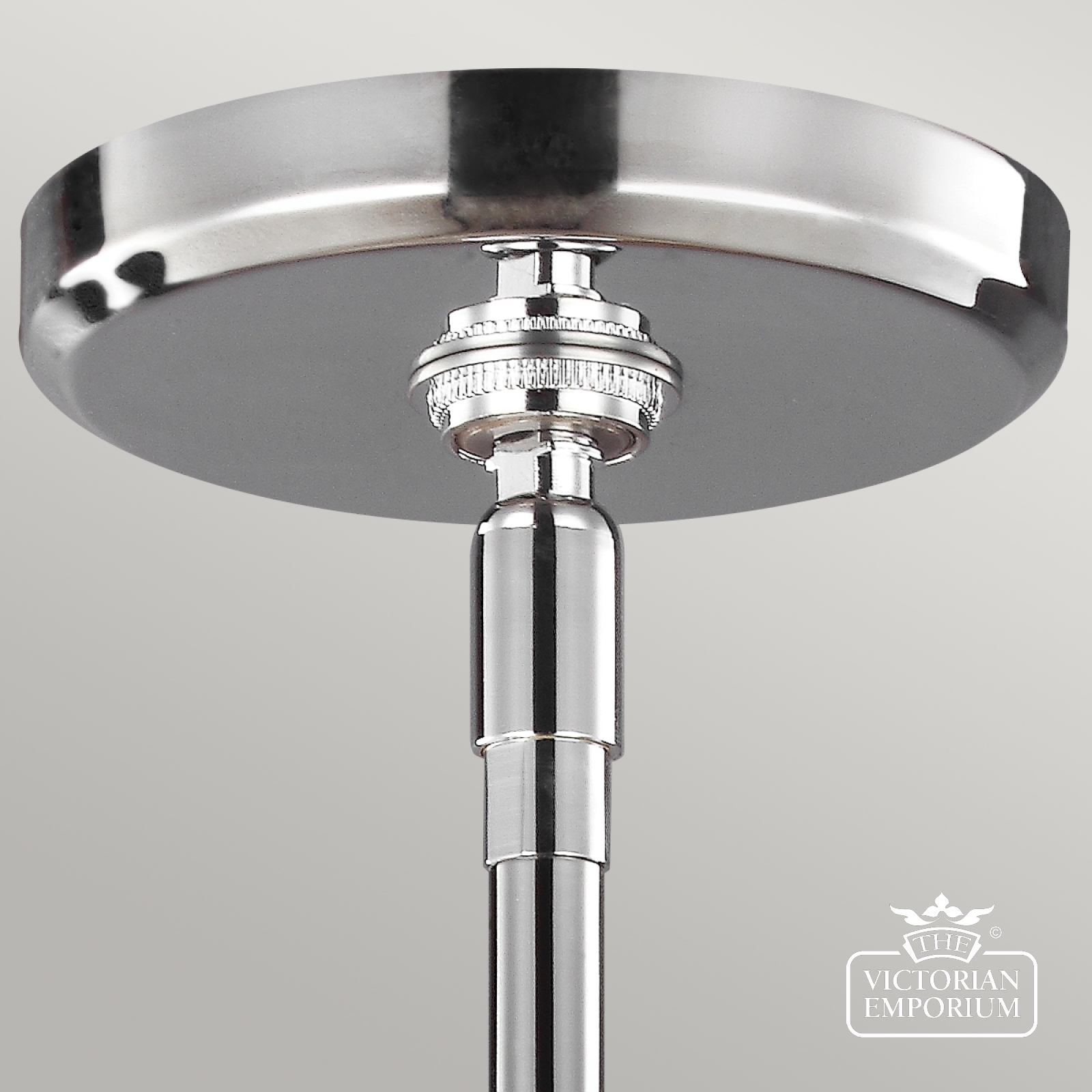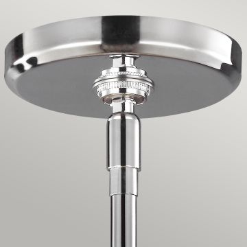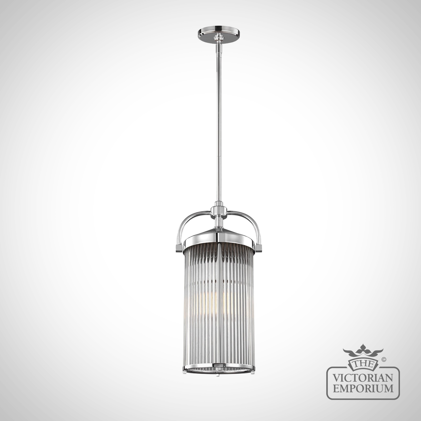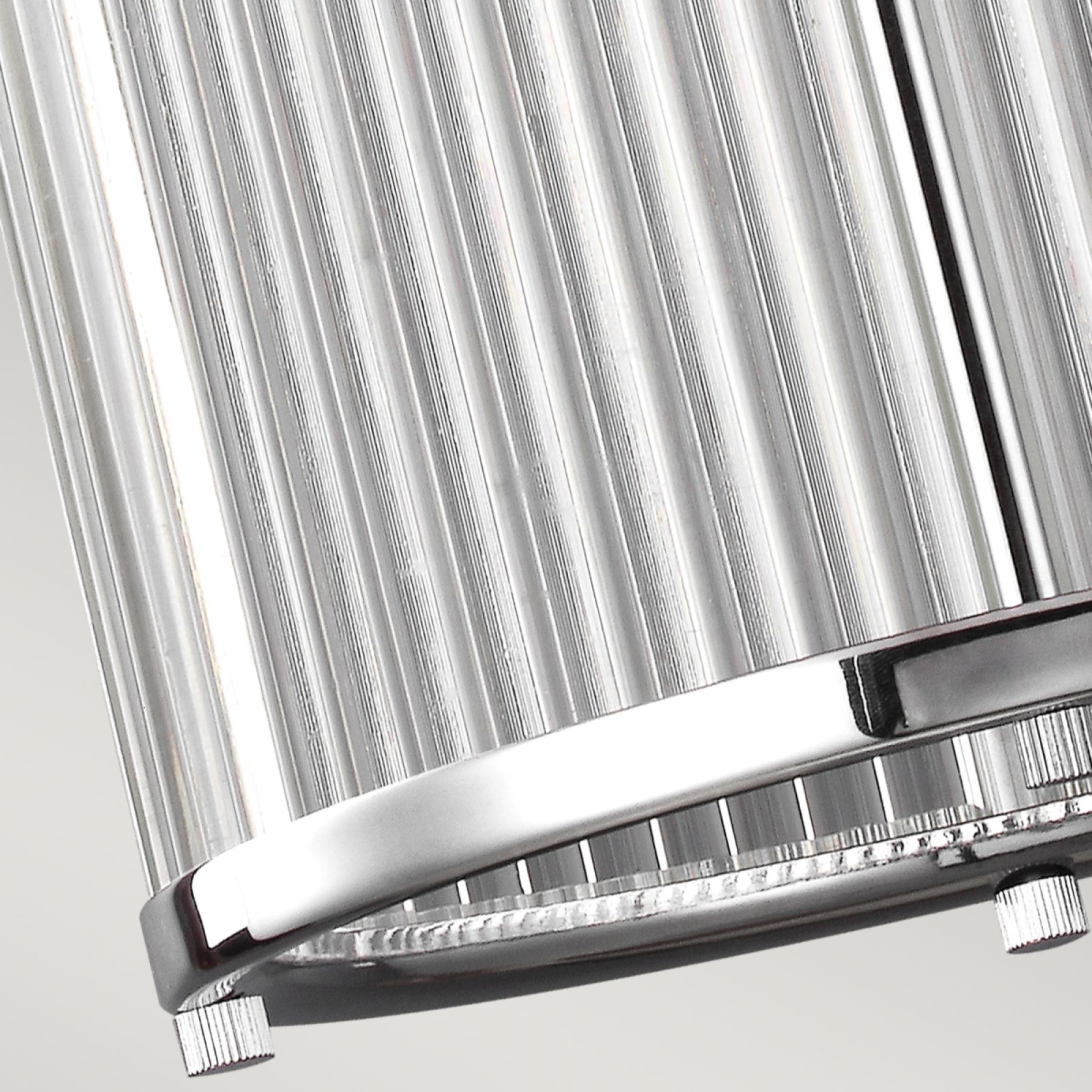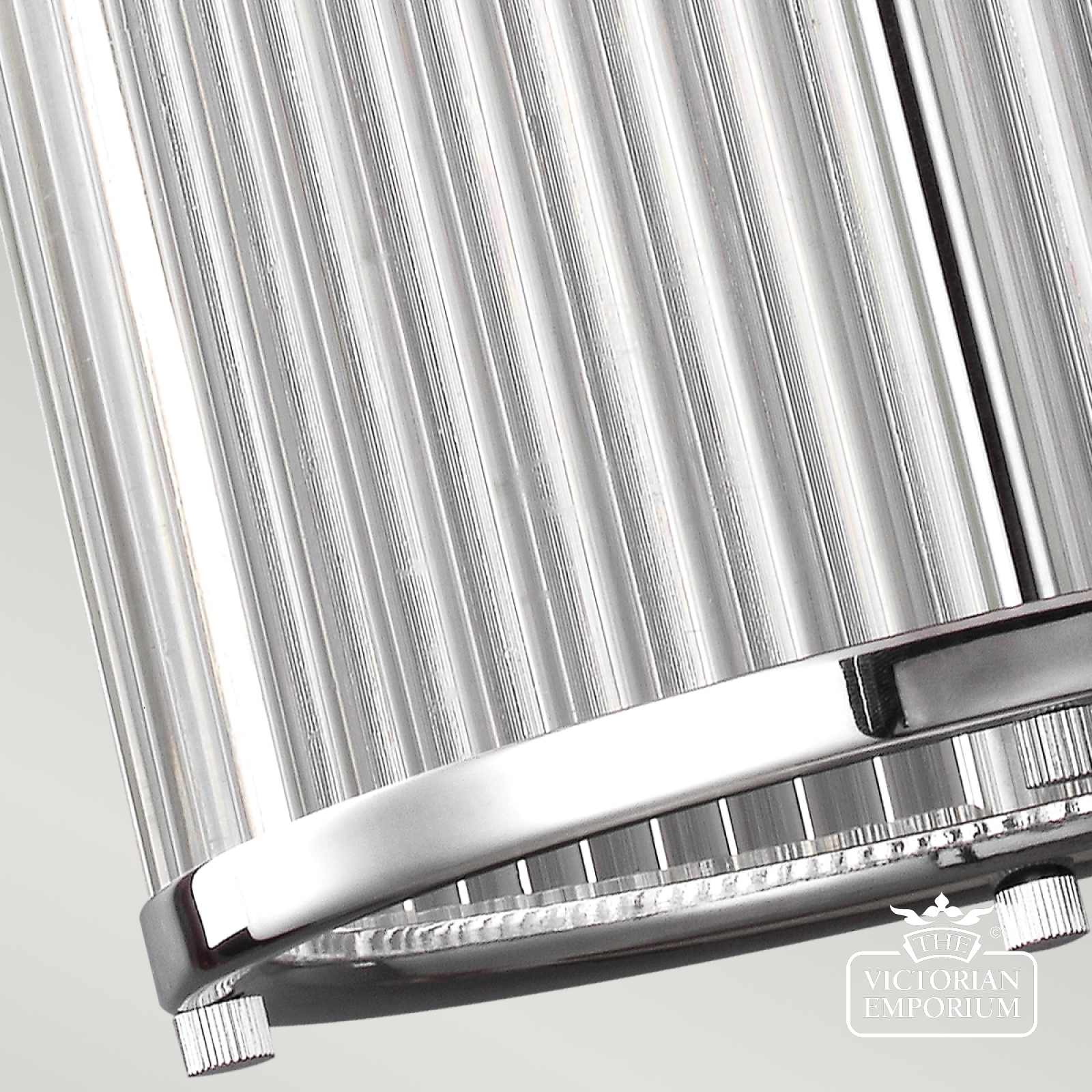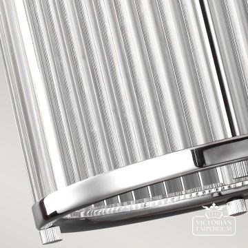 This light has a polished chrome finish with glass tube shades created using rows of individual clear glass rods to softly diffuse the light