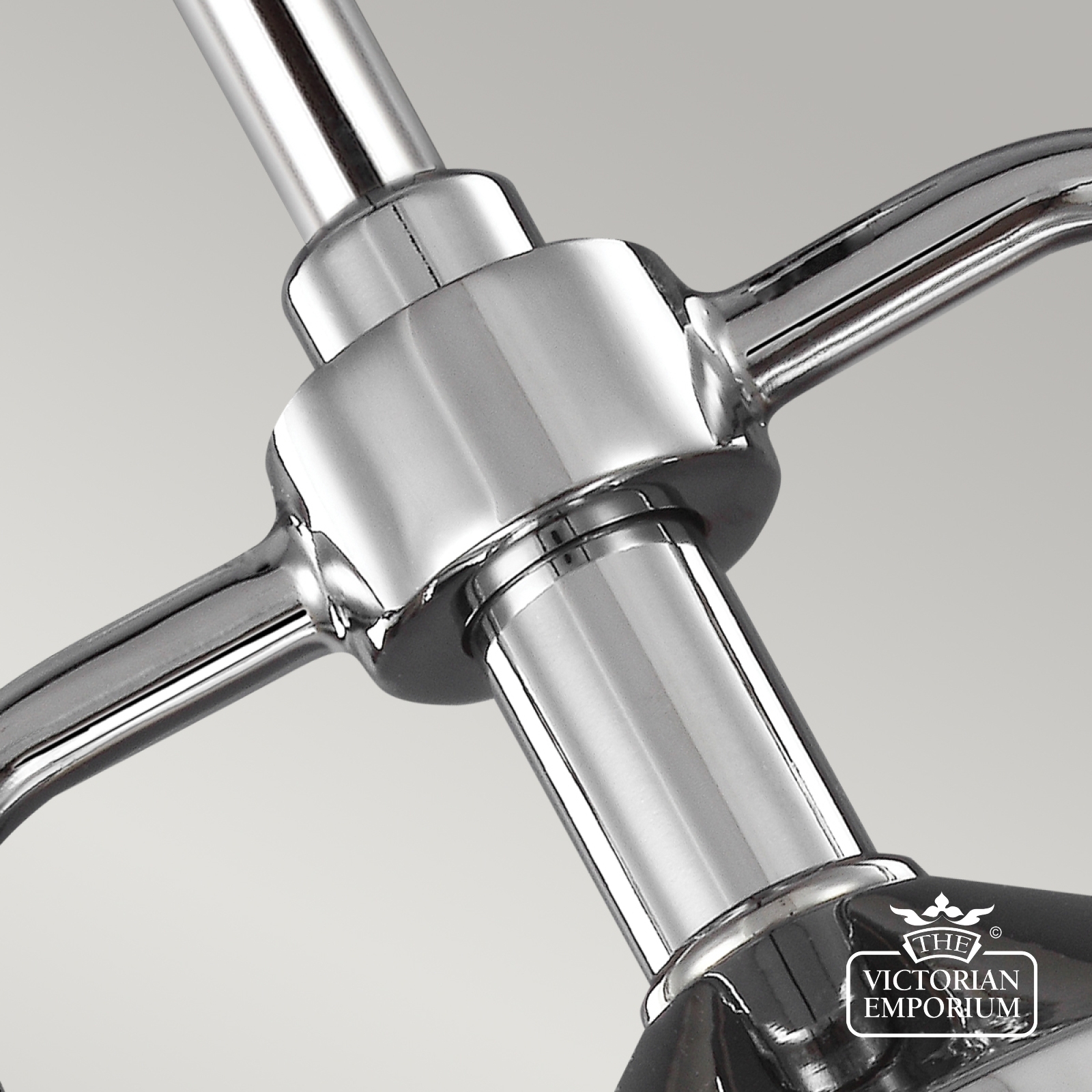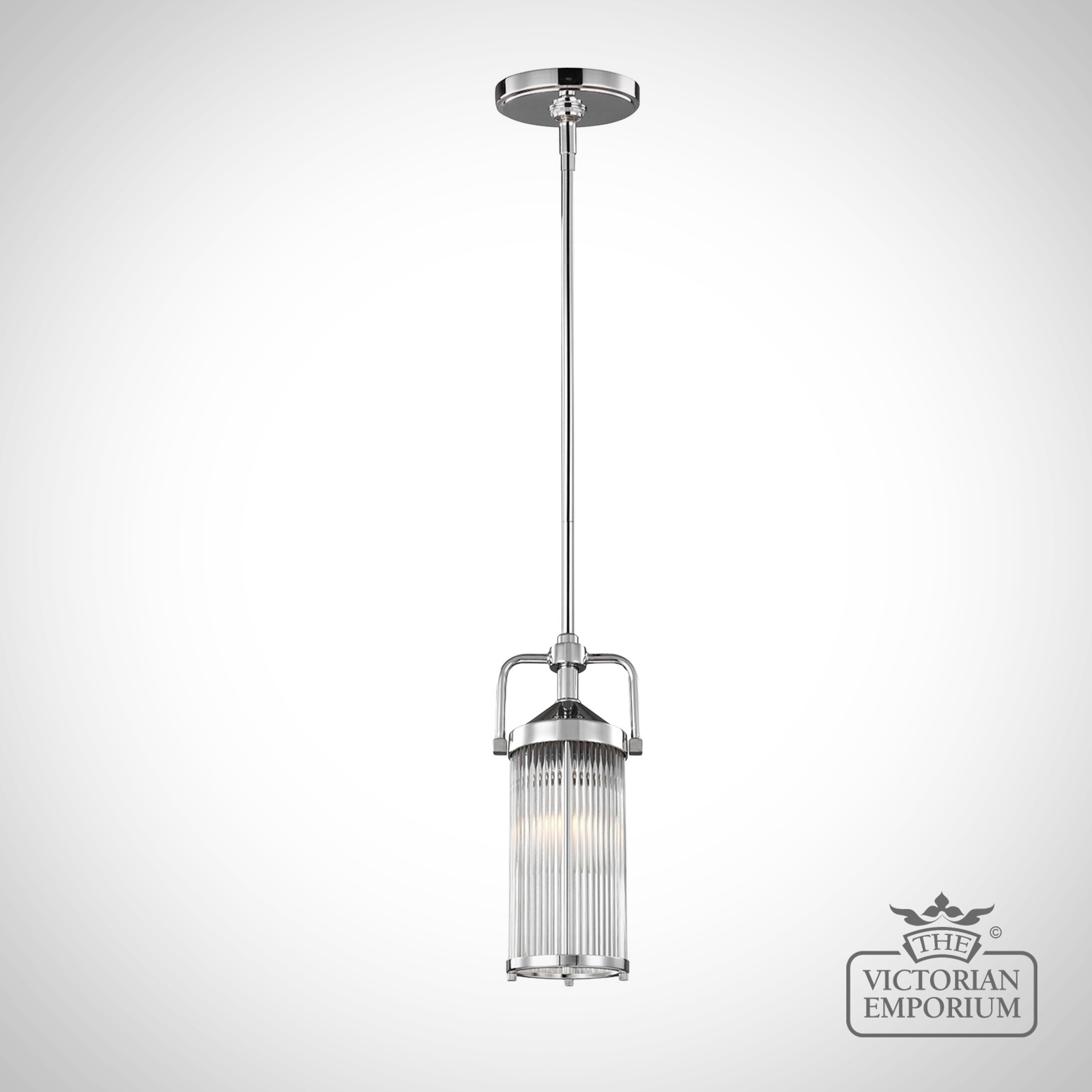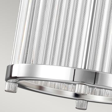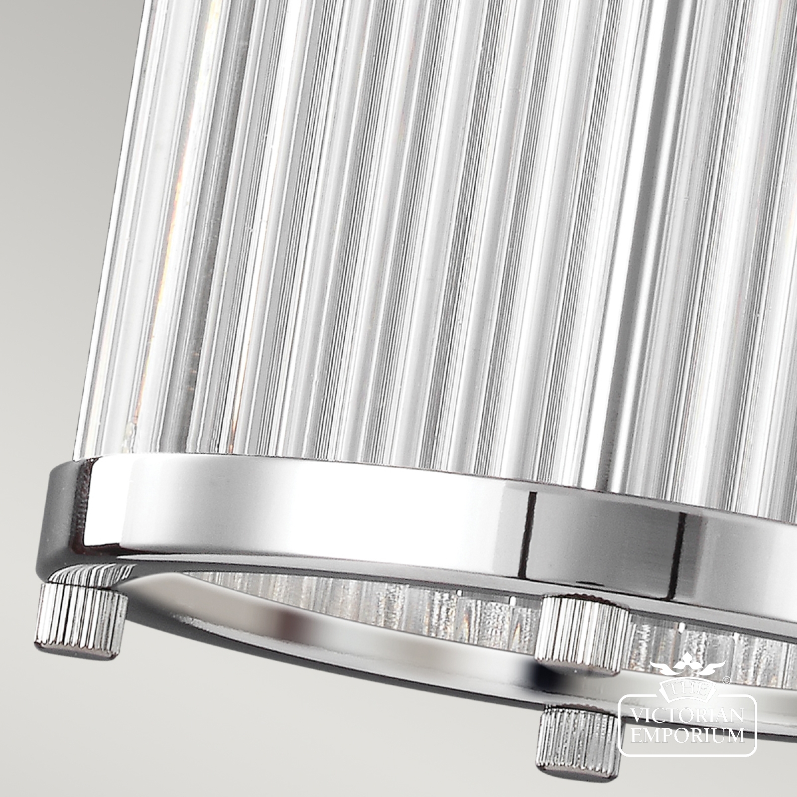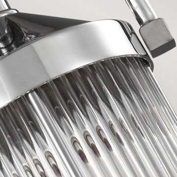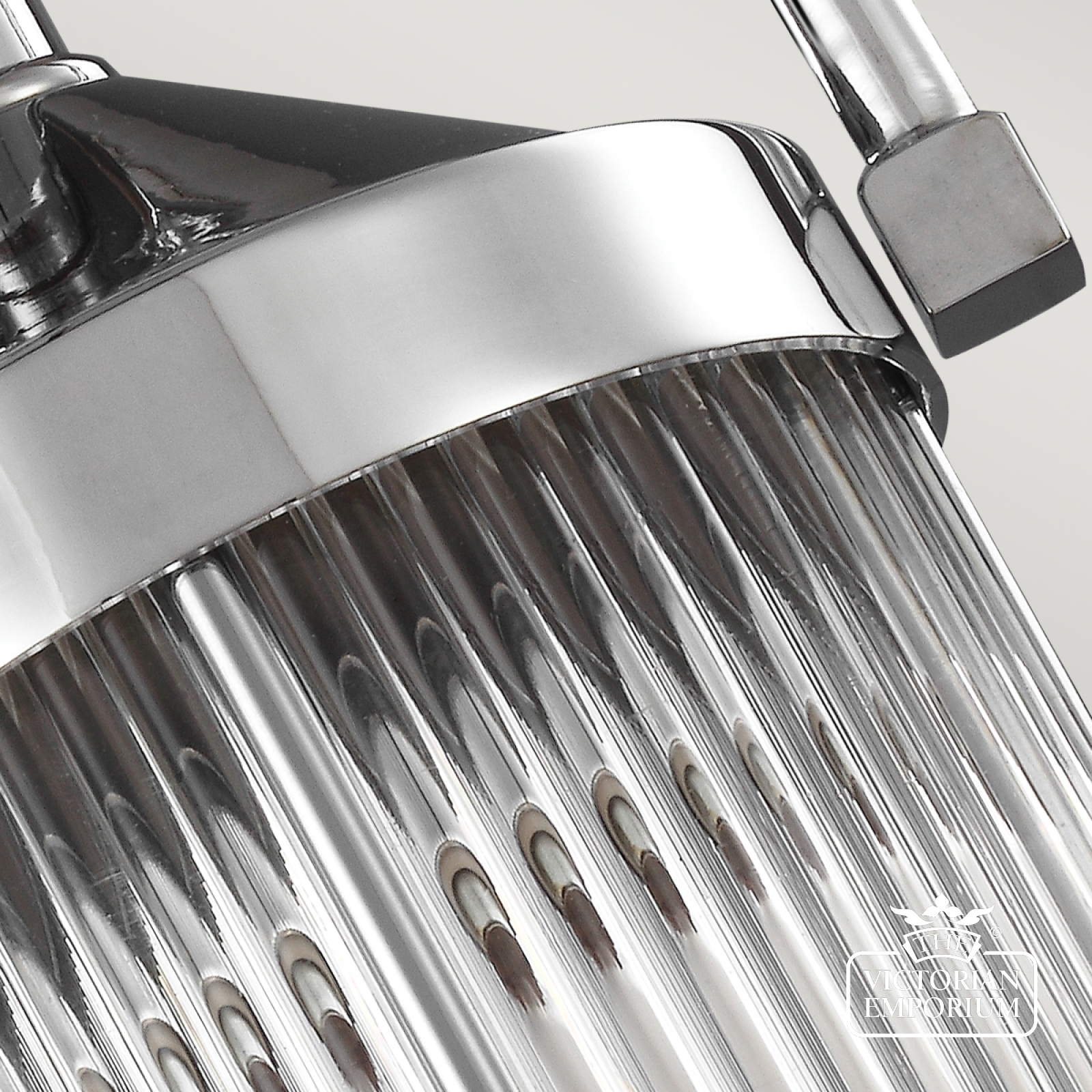 This light has a polished chrome finish with glass tube shades created using rows of individual clear glass rods to softly diffuse the light