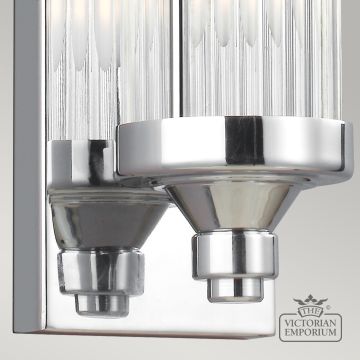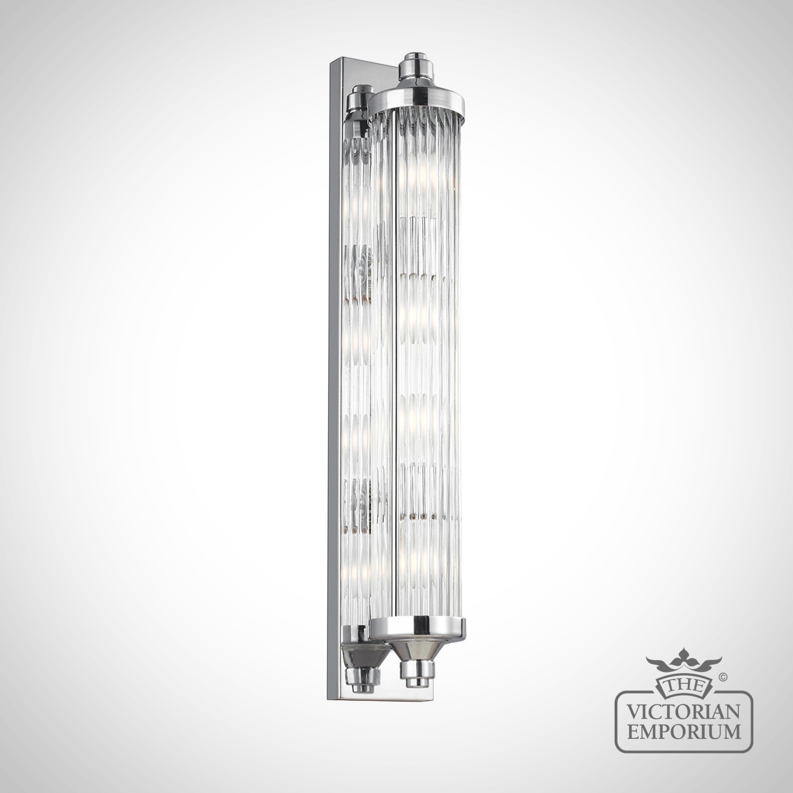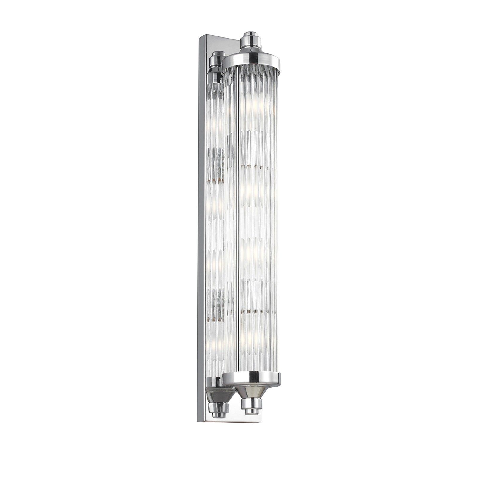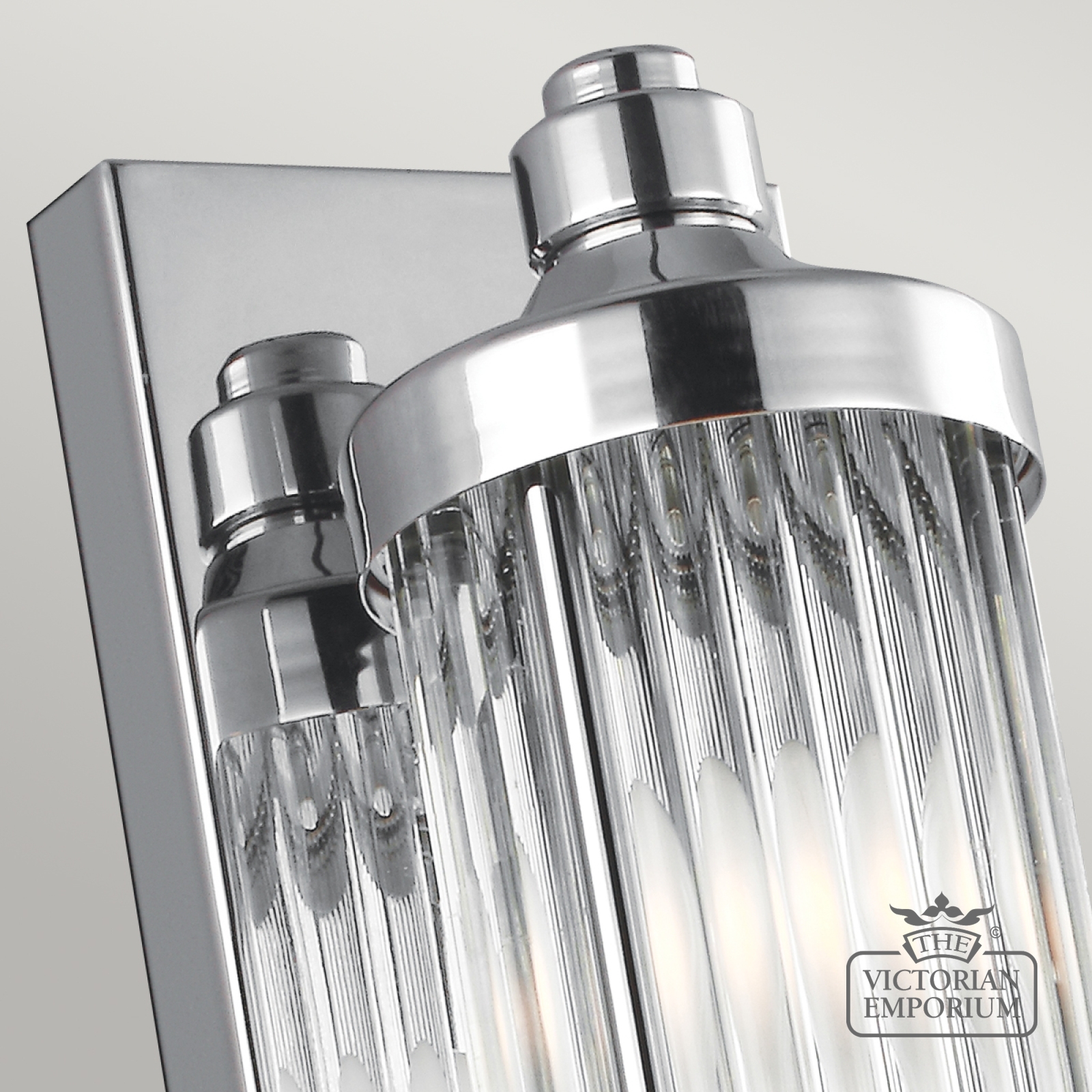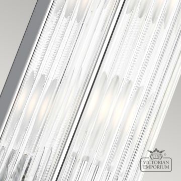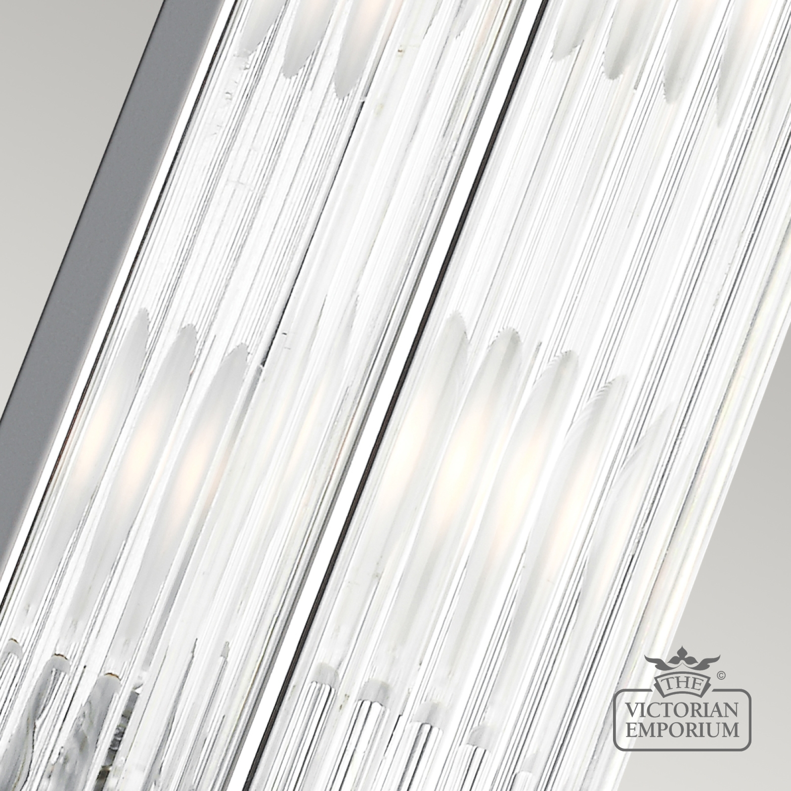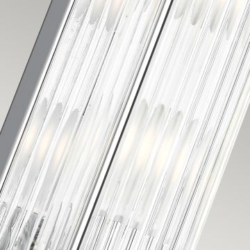 This elegant wall light has a polished chrome finish with glass tube shades created using rows of individual clear glass rods to softly diffuse the light