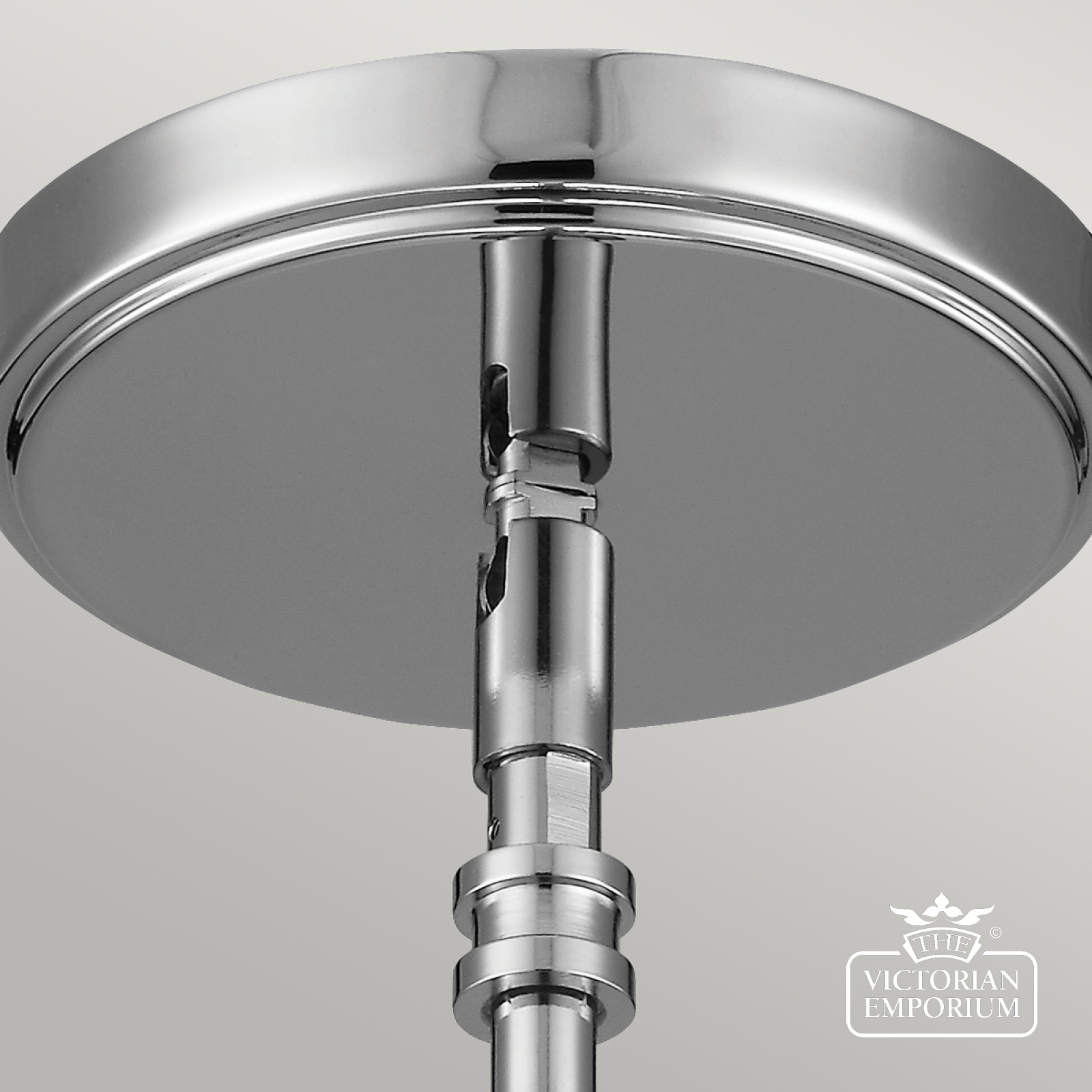 The Payne bathroom pendant light has an elegant design with clean, white, opal etched glass that complements the simple spun metal rings, as well as setting off the more detailed metal rings of the ornate fittings