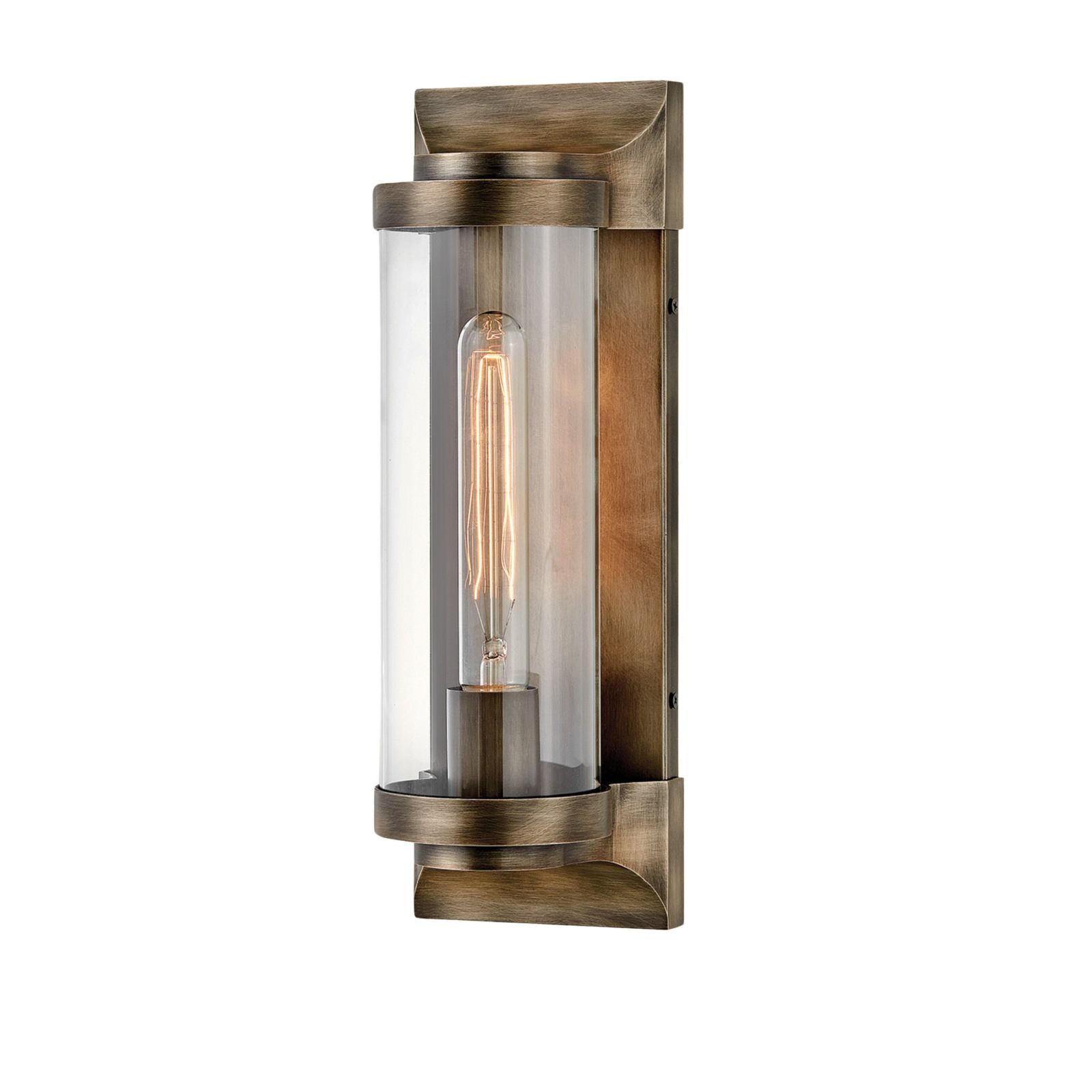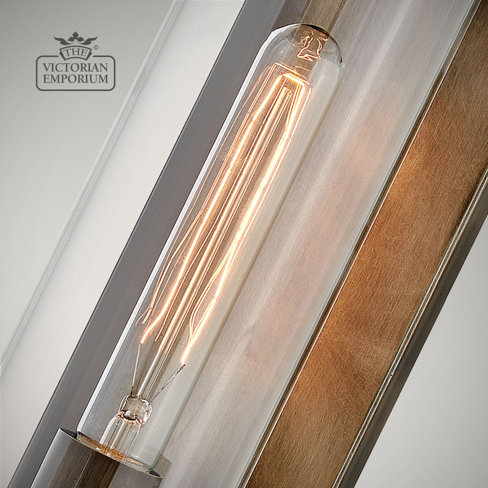 This is an elegant slim exterior wall lantern with period inspiration featuring a vintage style filament with a sleek backplate in Painted Burnished Bronze