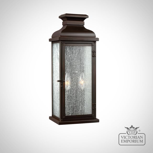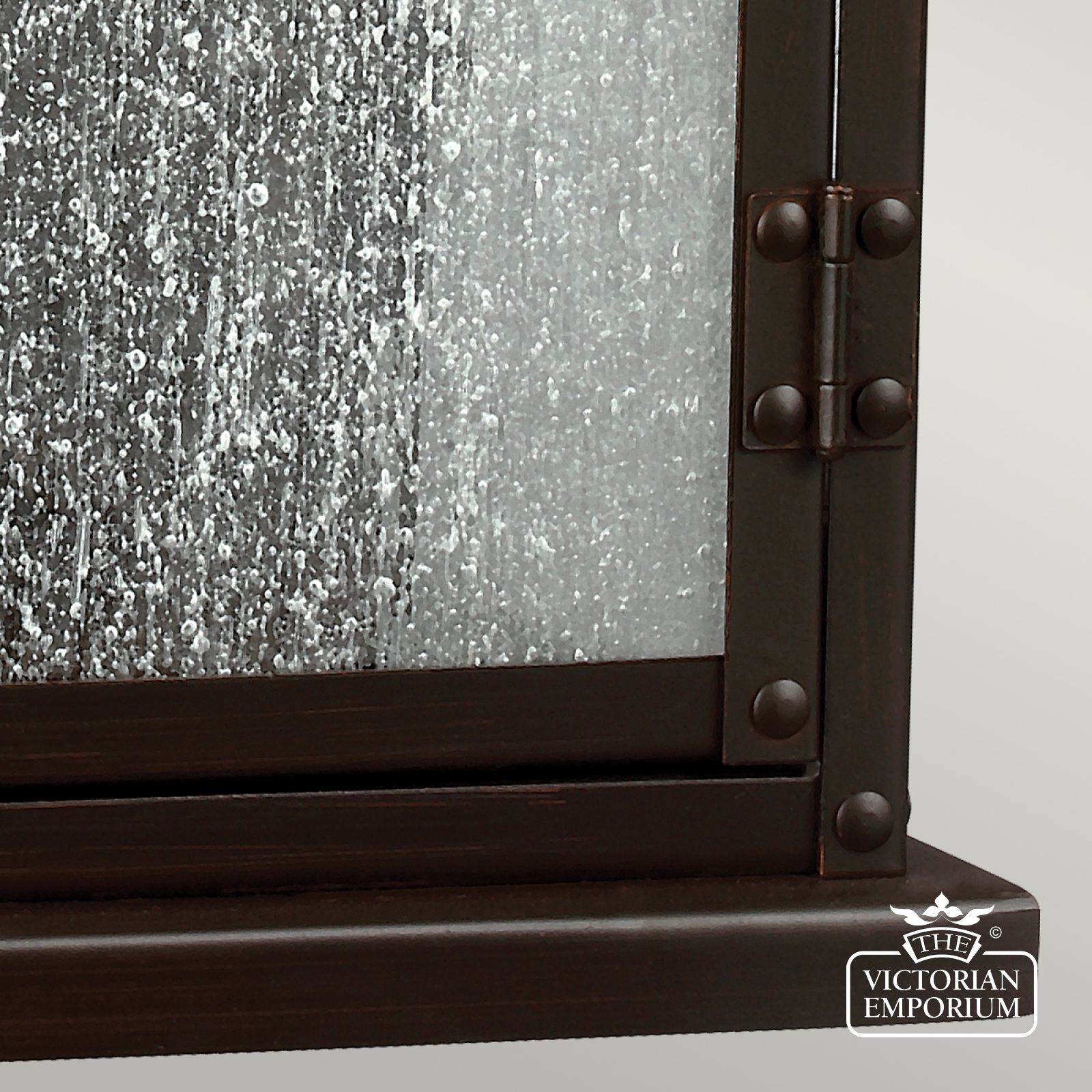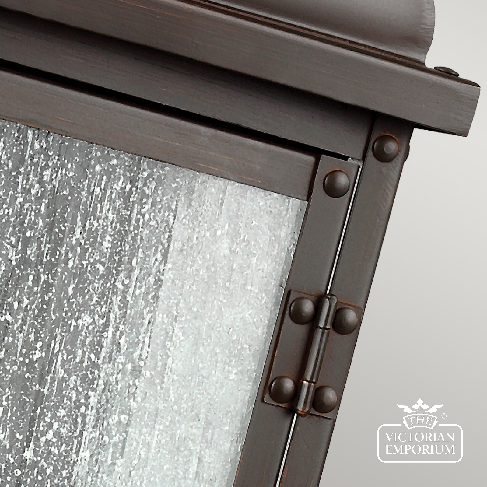 This lantern design is inspired by London lanterns with a hinged and latched front panel making it easy to change the bulb