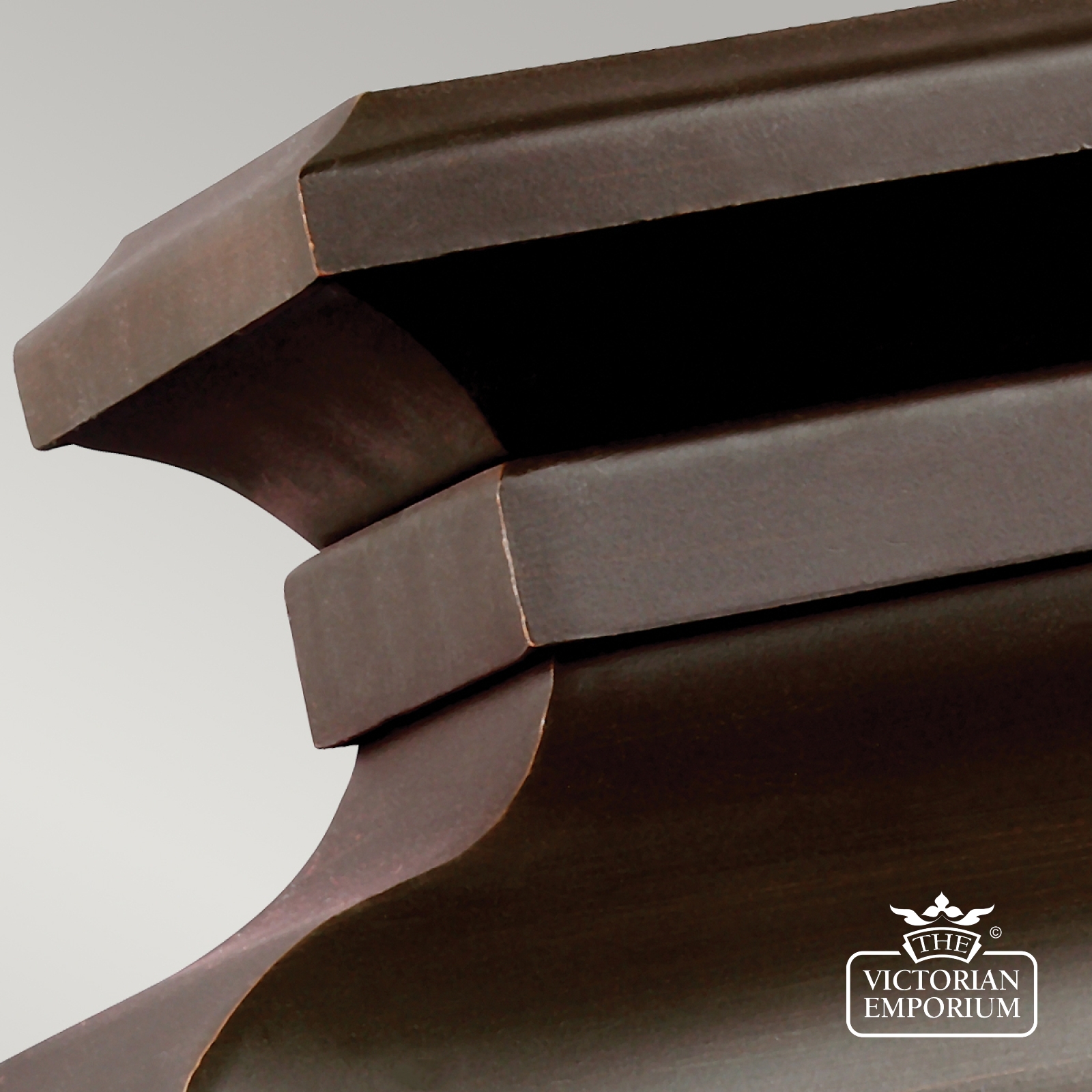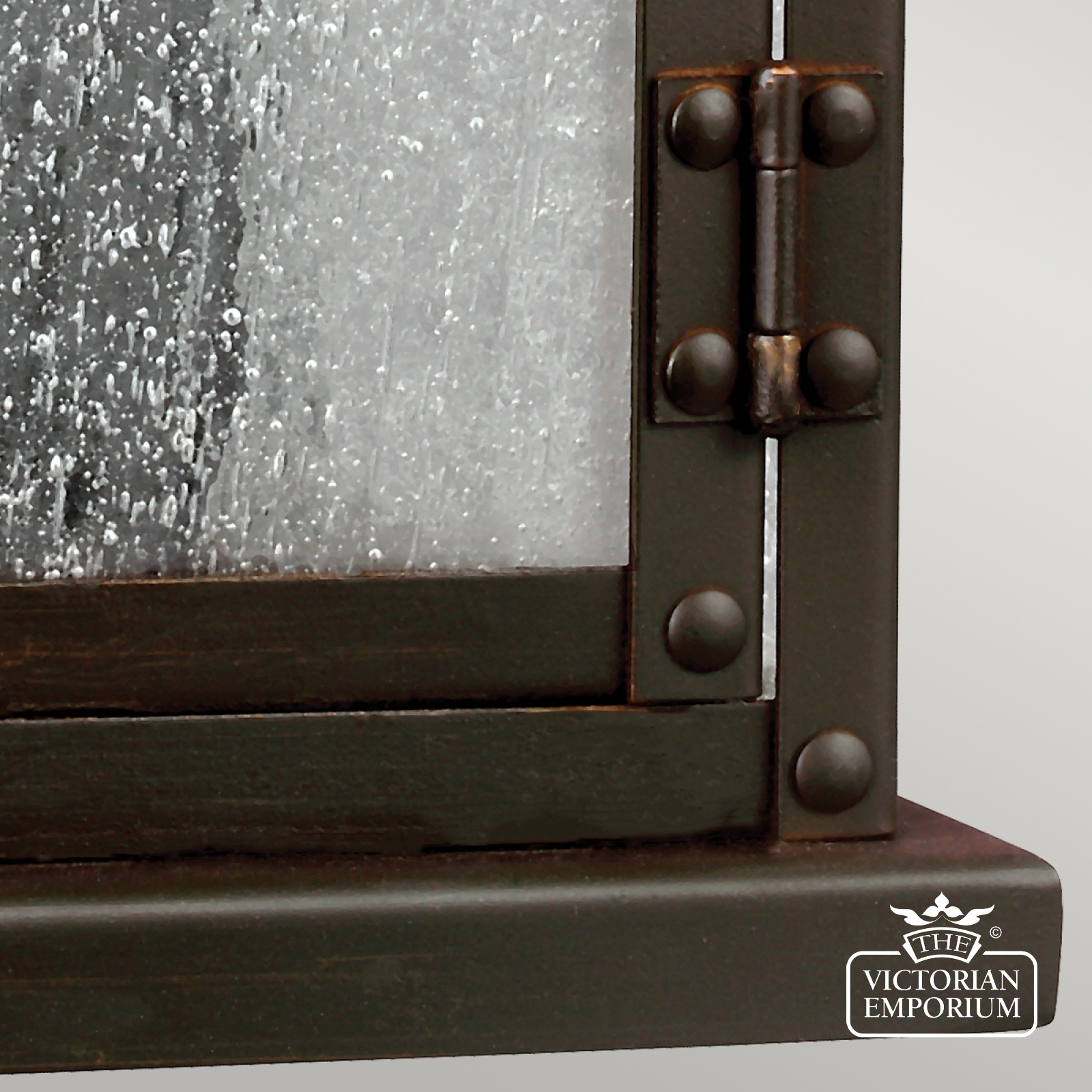 This lantern design is inspired by London lanterns with a hinged and latched front panel making it easy to change the bulb