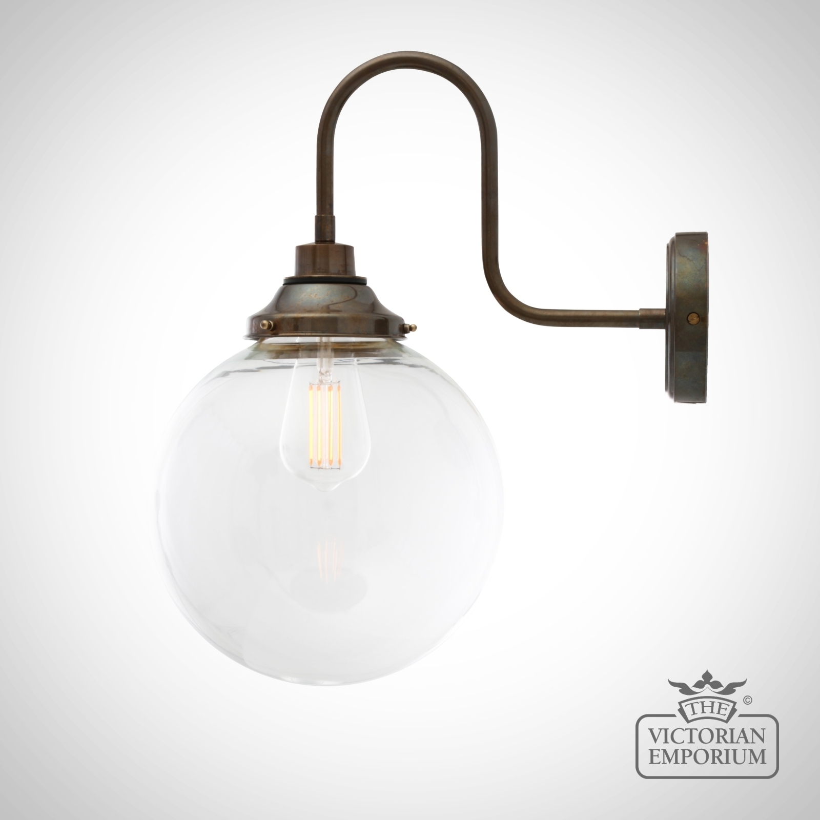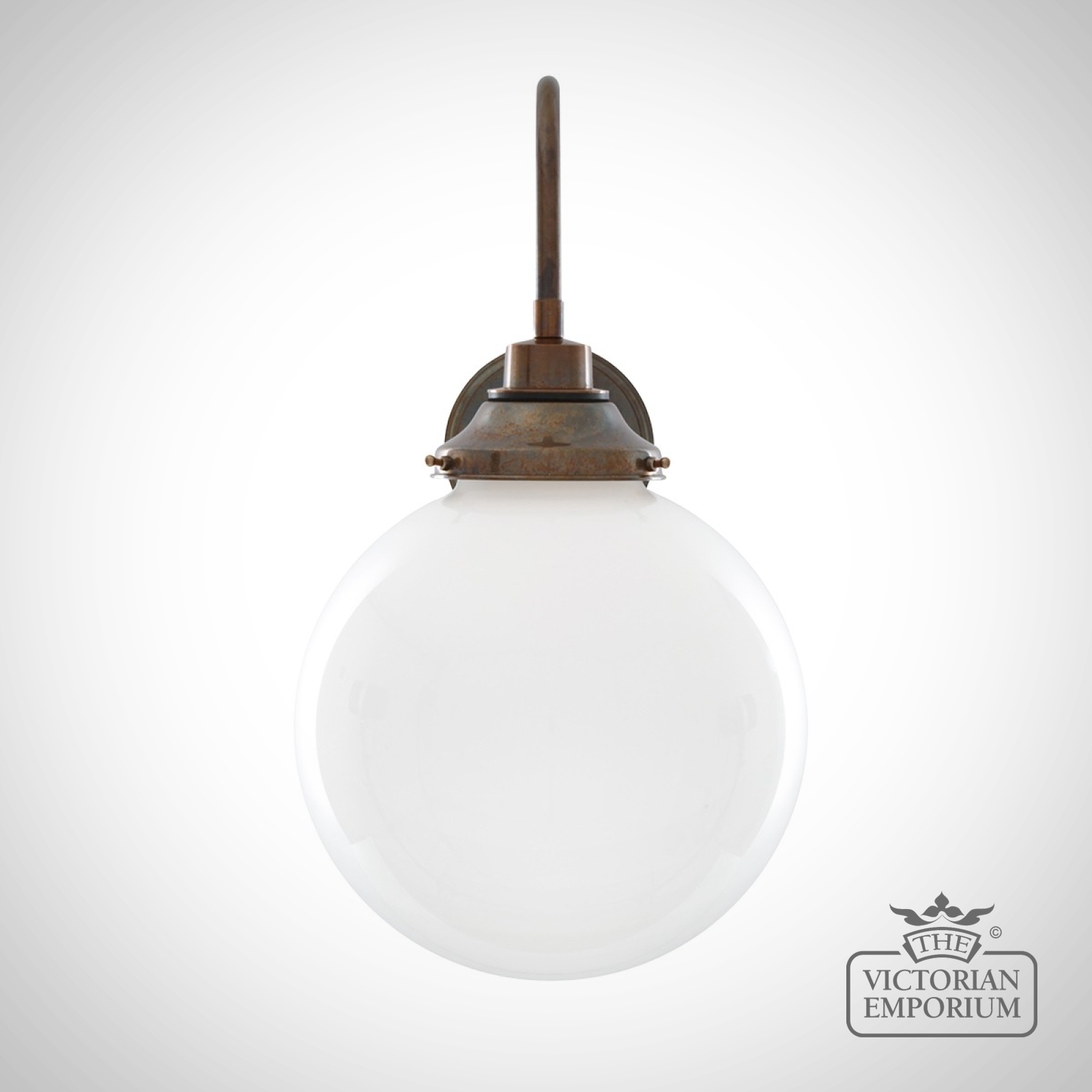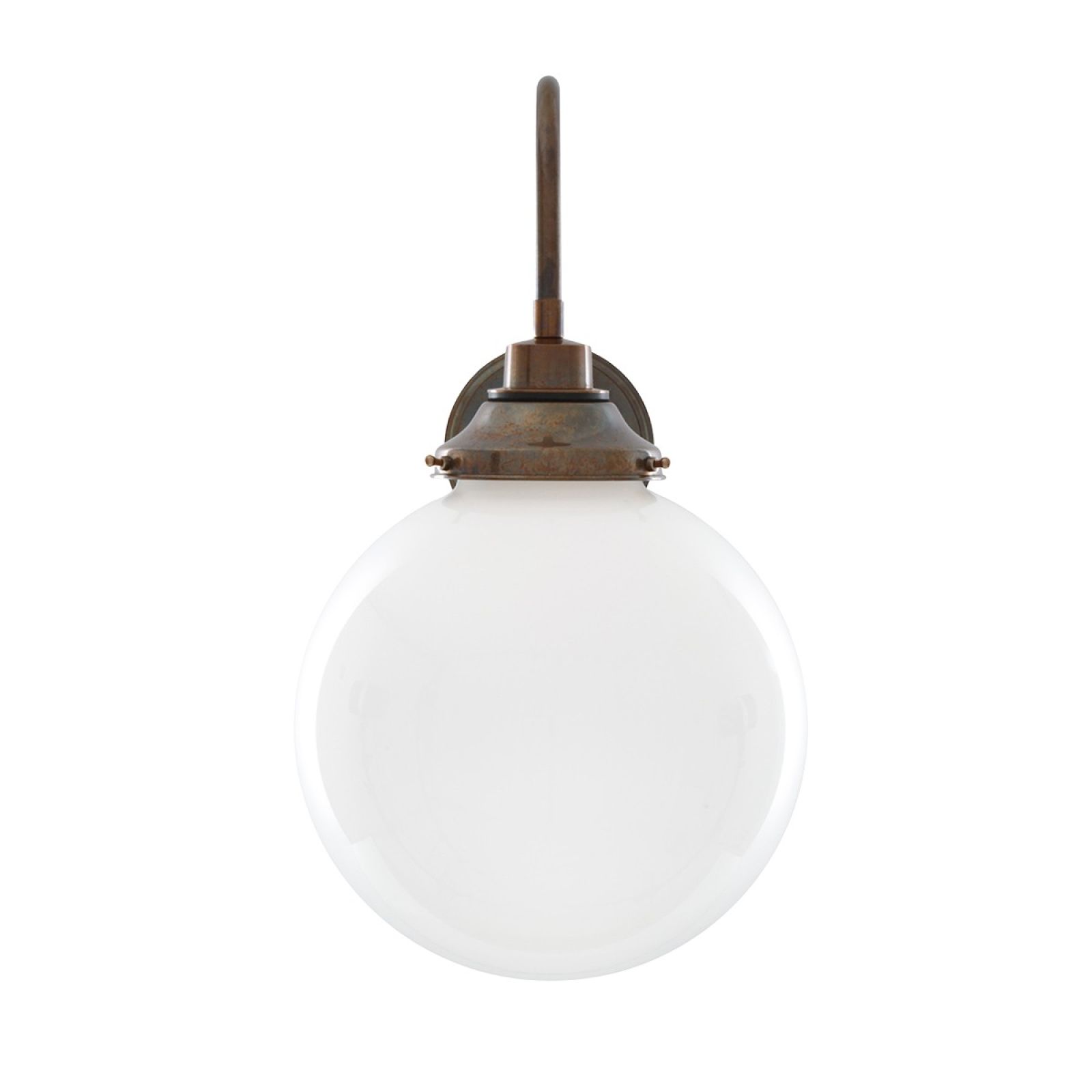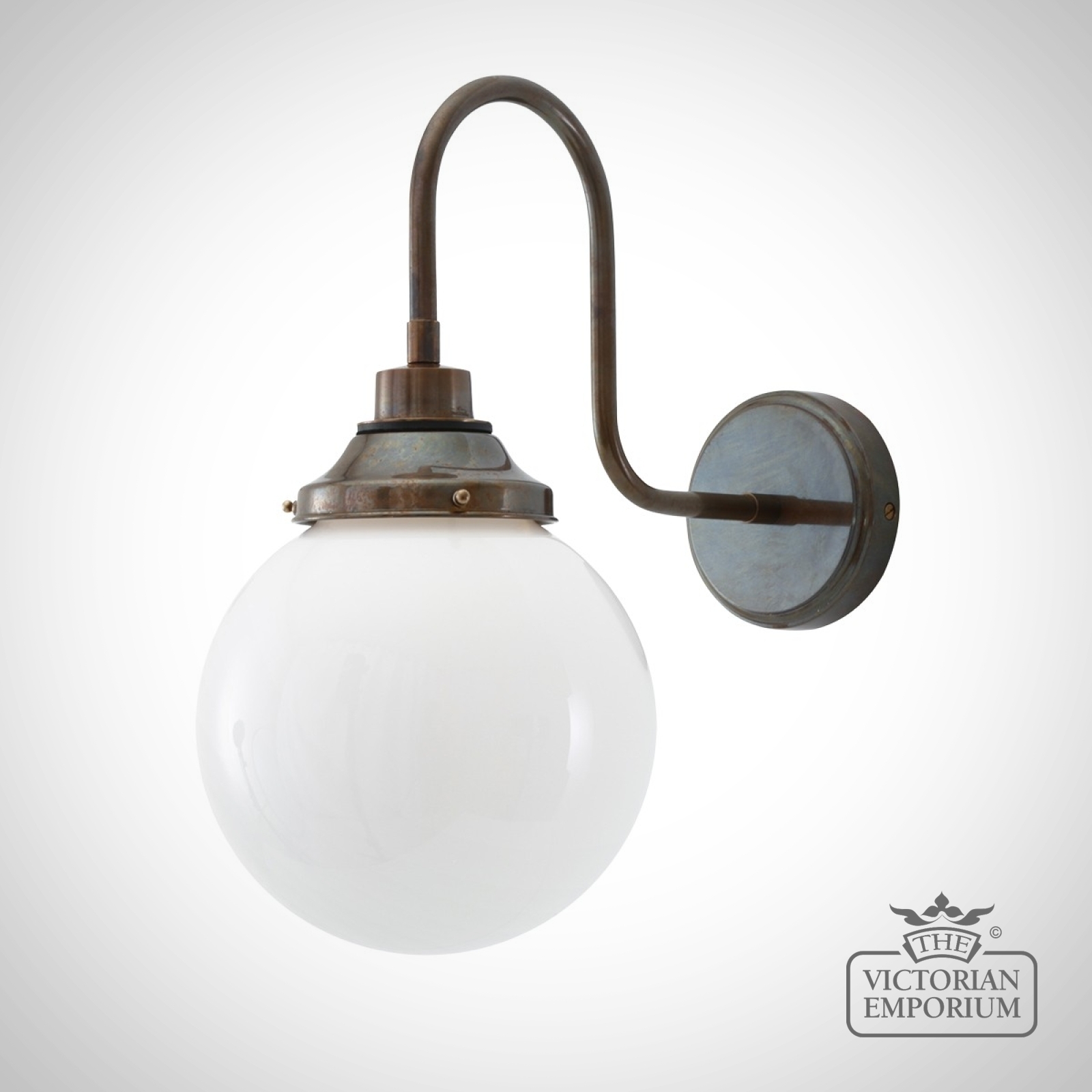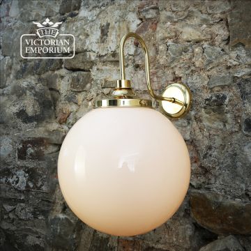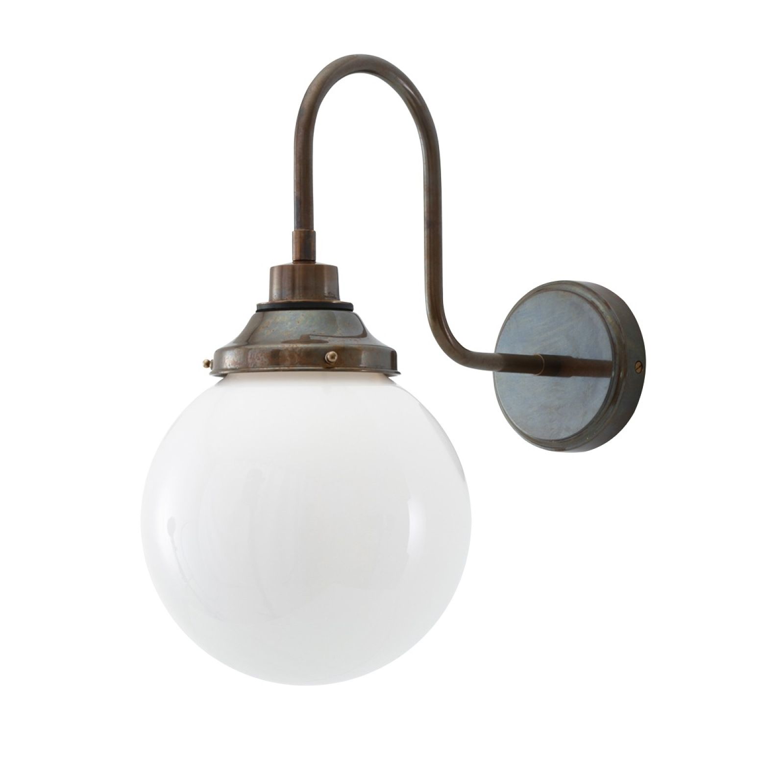 The Pelagio Swan Neck Wall Light is a traditional bathroom down wall light that features an opal glass globe shade in a wide range of finishes.