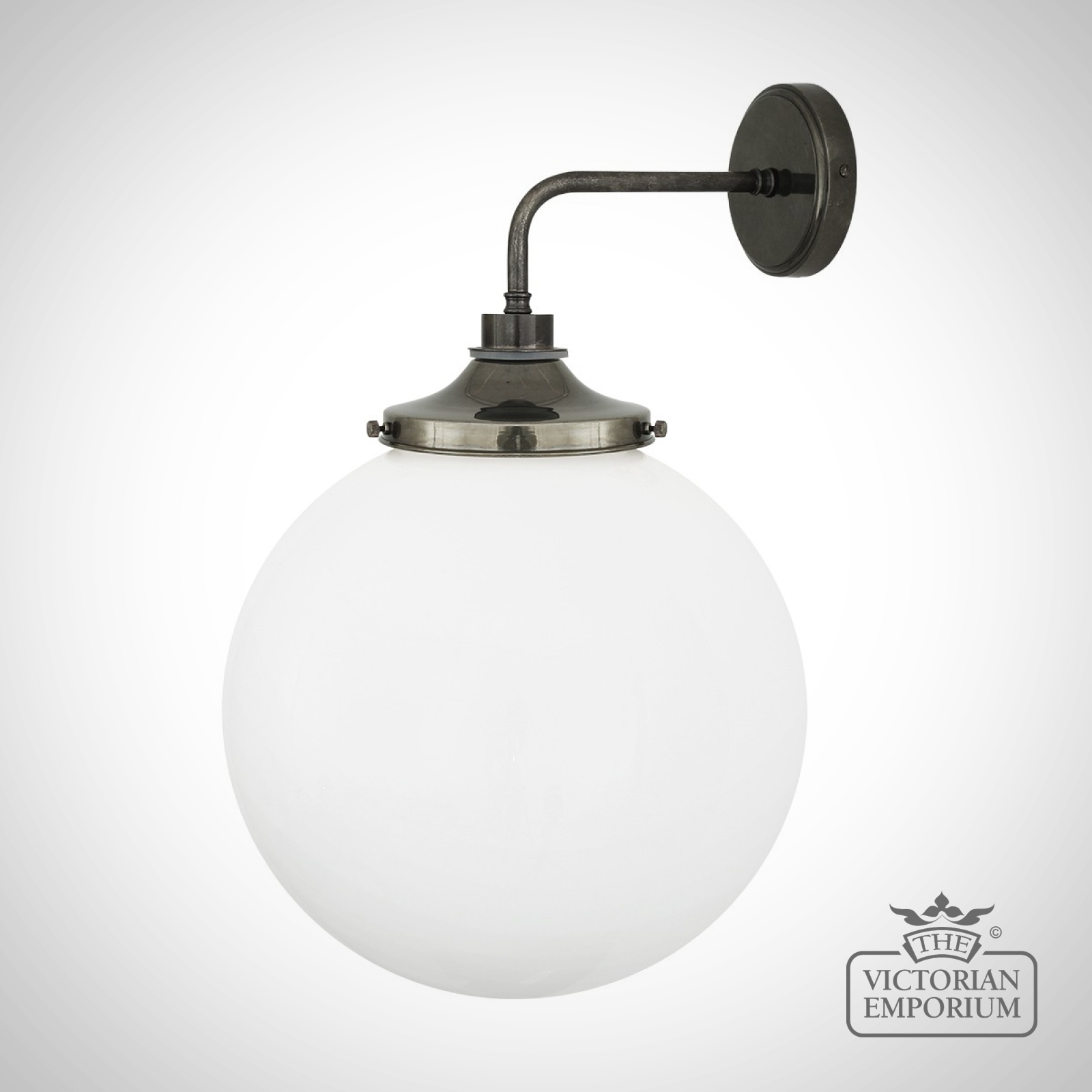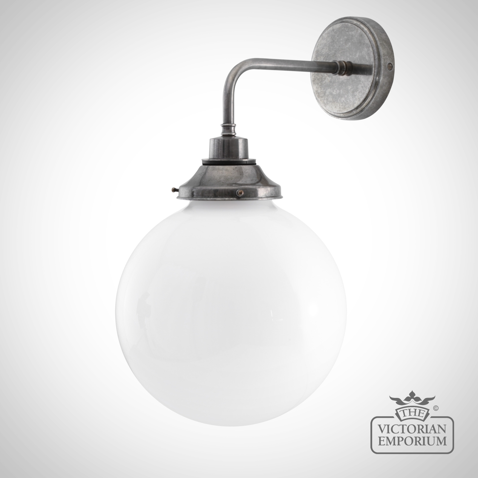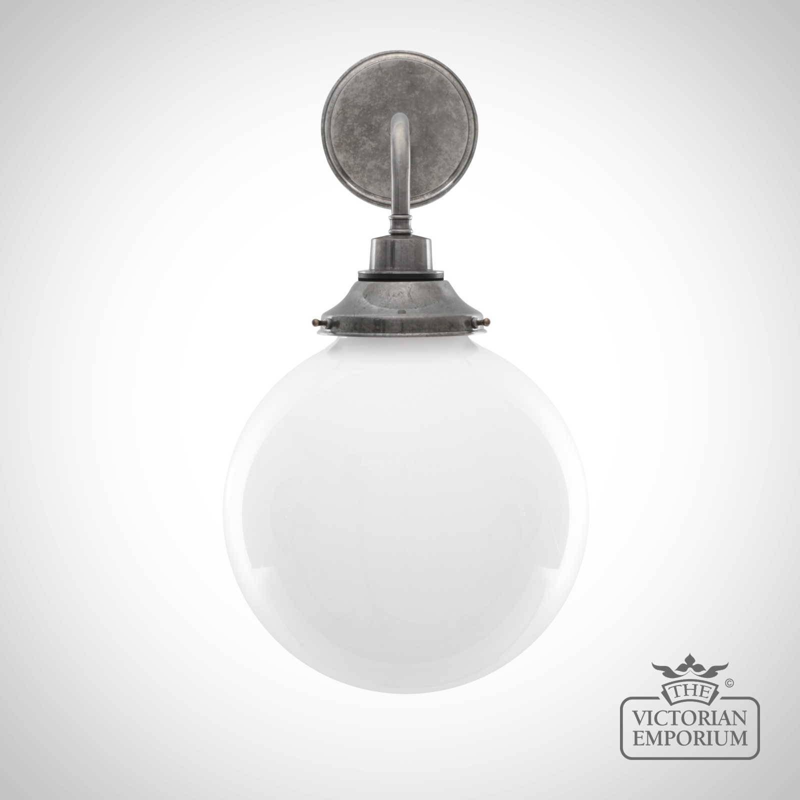 The Pelagio Wall Light is a traditional bathroom down wall light that features an opal glass globe shade in a wide range of finishes.