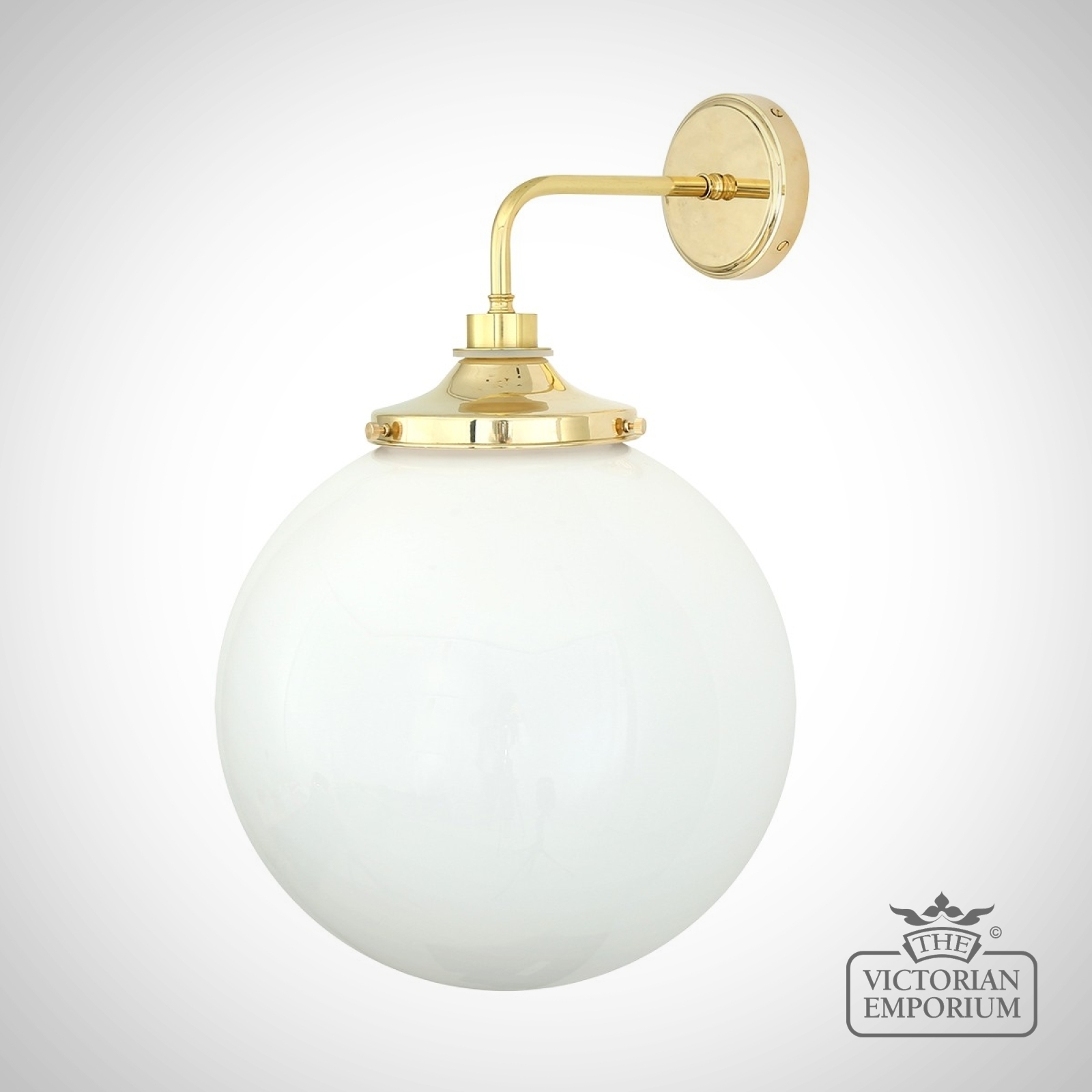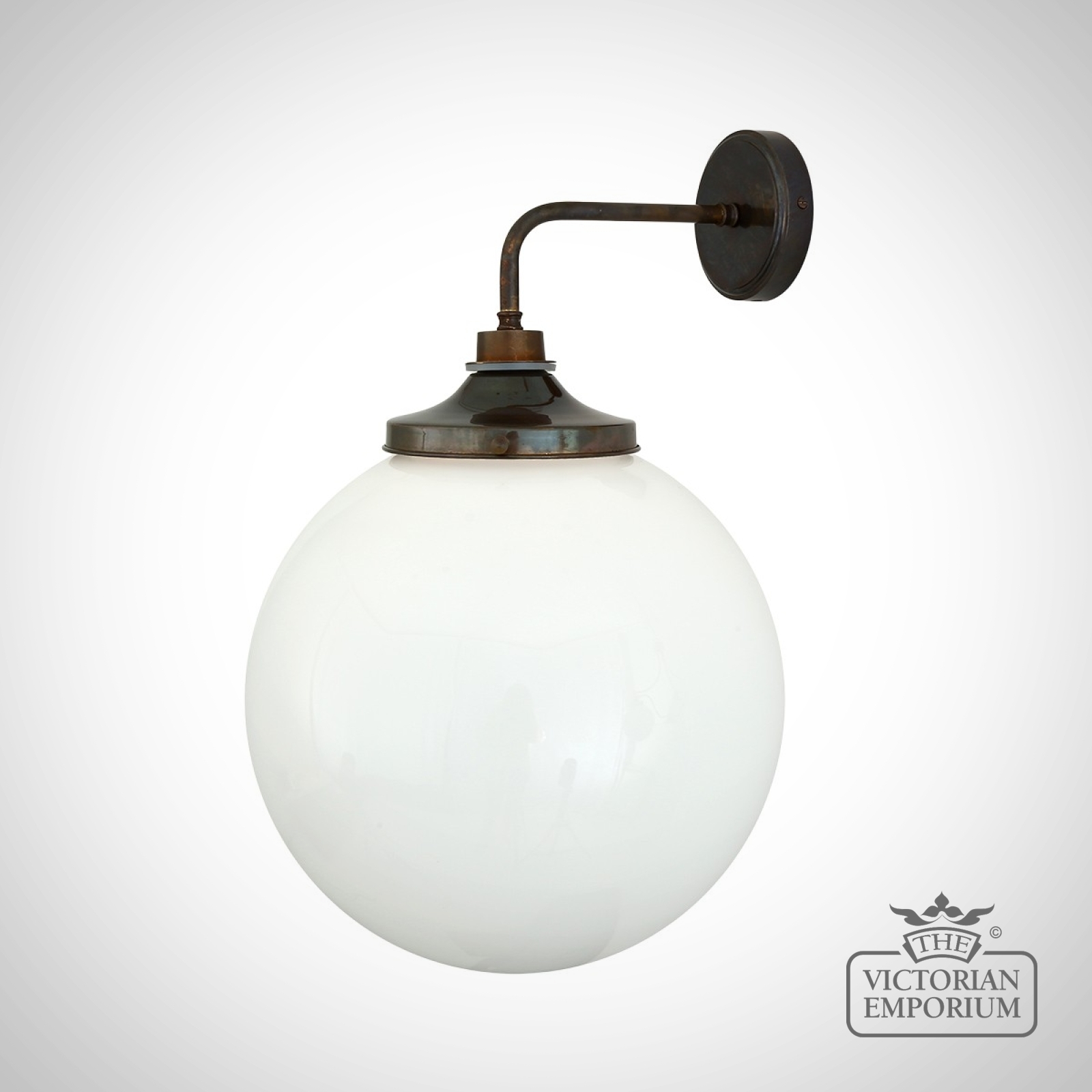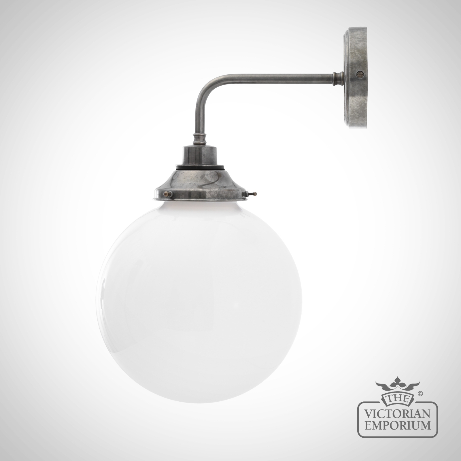 The Pelagio Wall Light is a traditional bathroom down wall light that features an opal glass globe shade in a wide range of finishes.