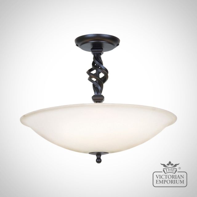 A versatile, elegant semi flush ceiling light made from hand-forged iron, giving it a rustic traditional look.