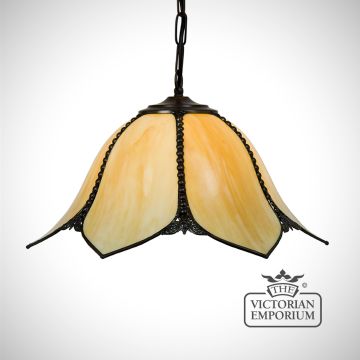 This beautiful range of lights features bent opalescent amber glass shades with antique bronze metalwork