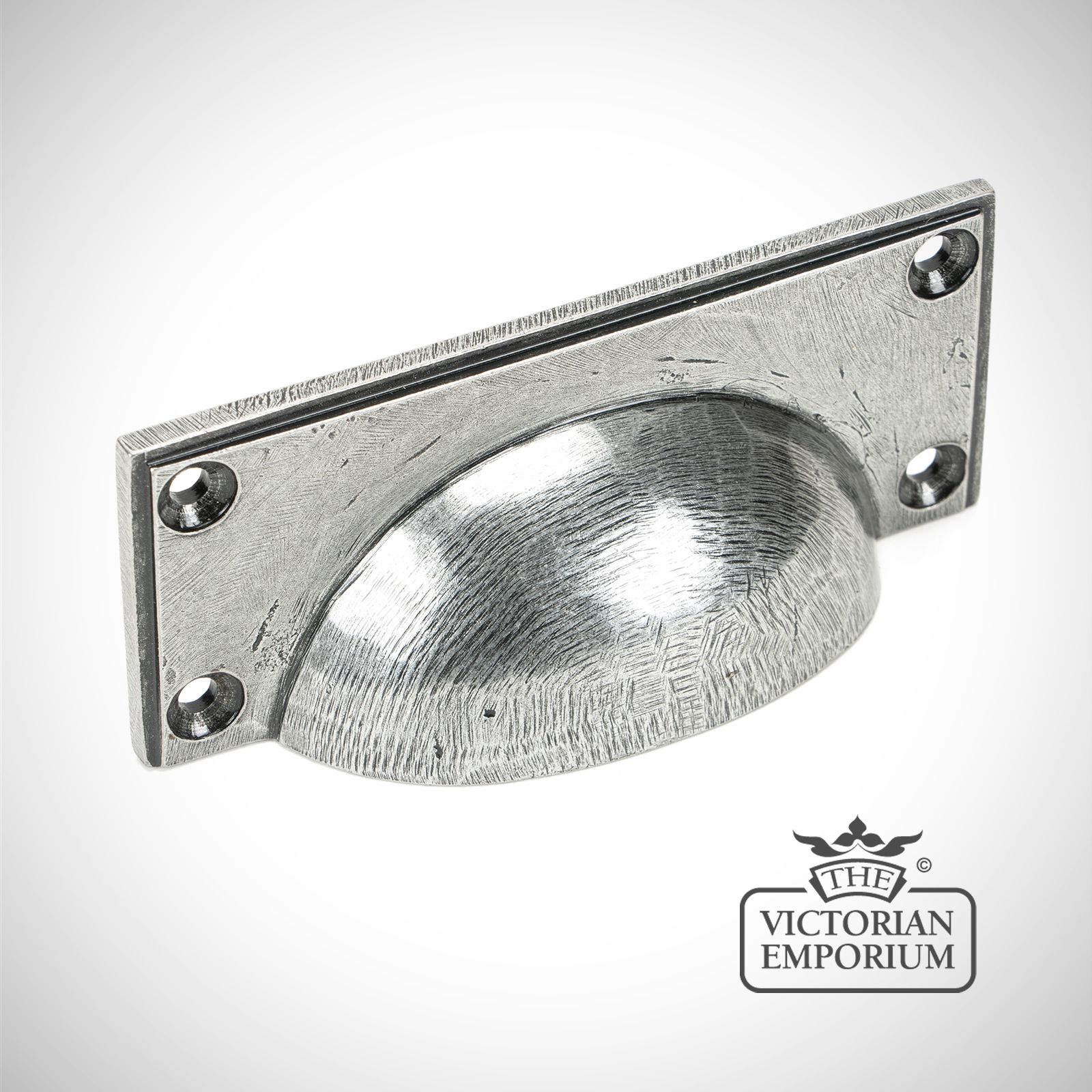 This is a high quality pewter drawer pull with an eye catching hammered design which really complements the design.