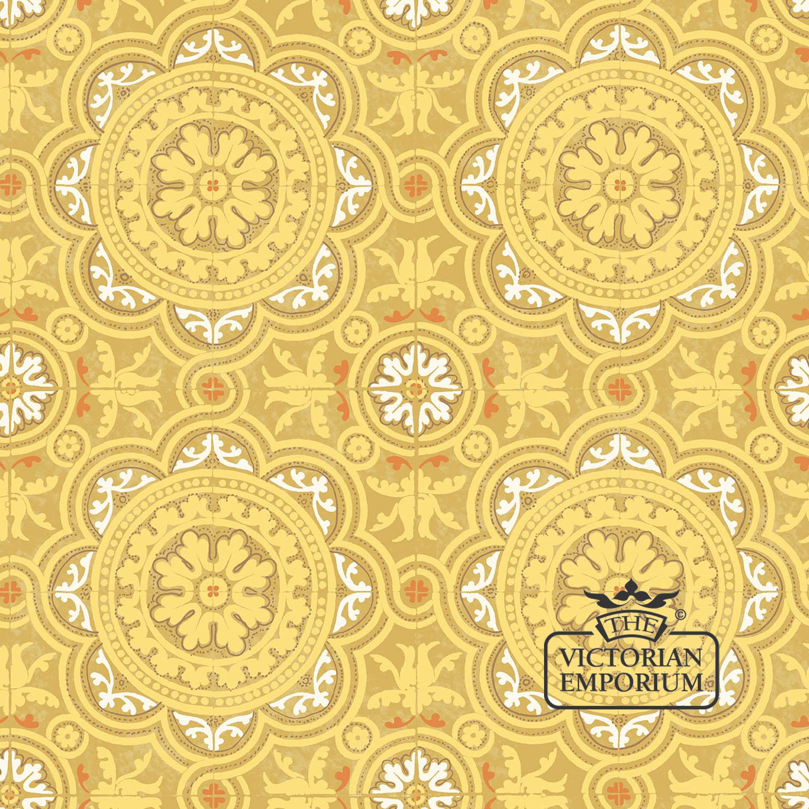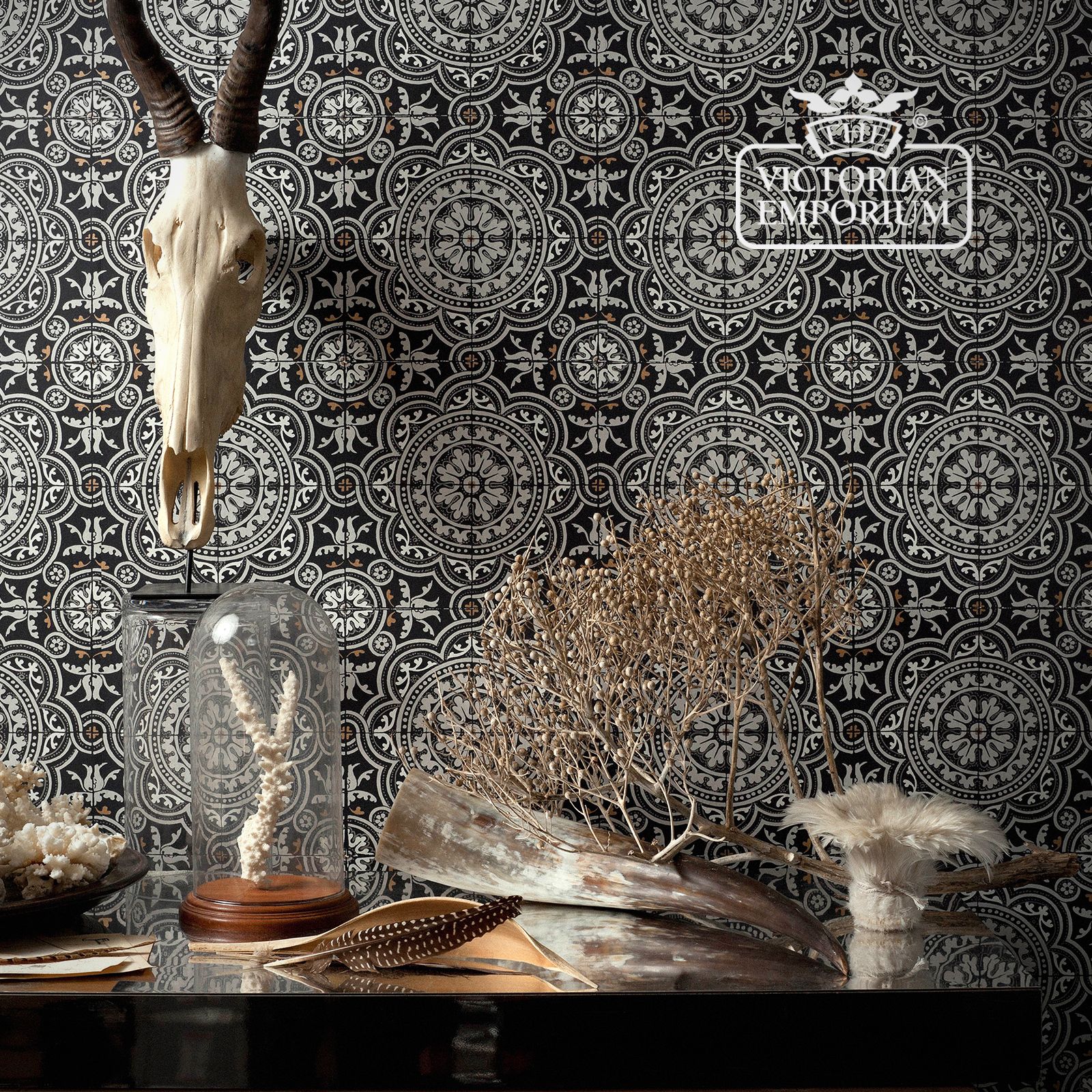 A playful take on the ‘blue and white’ tile, the Piccadilly wallpaper creates a striking pattern of intricately decorated tiles in traditional colourings of blues, turquoises, greens, reds, yellows and black. Available in nine colourways.