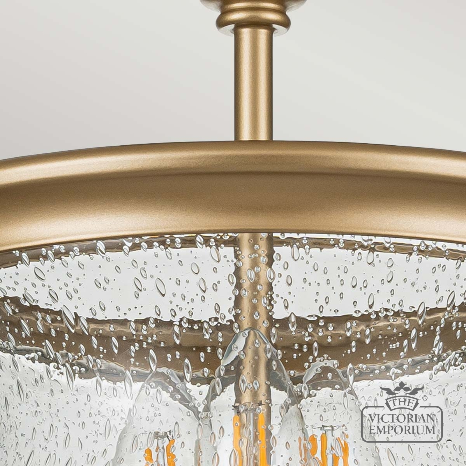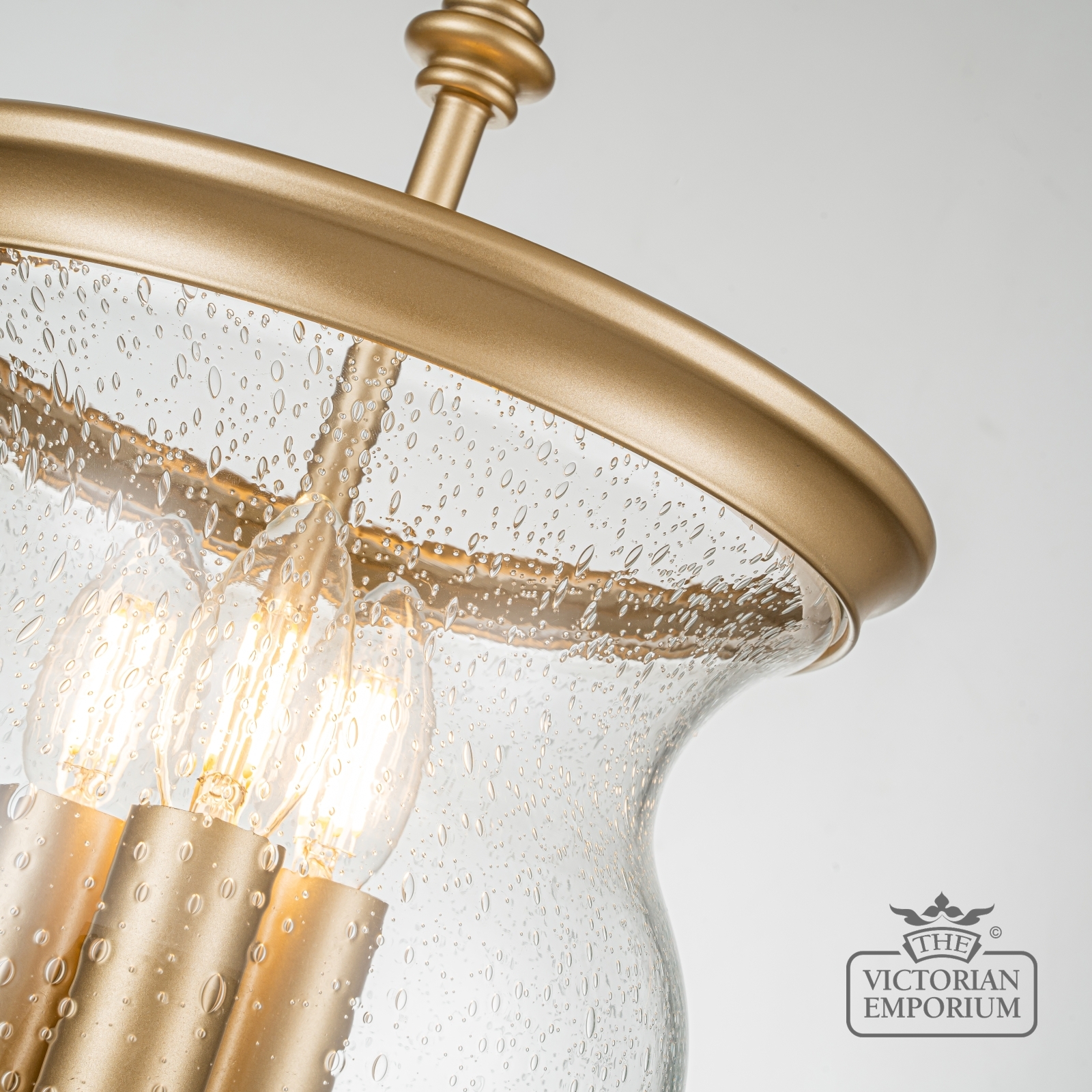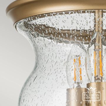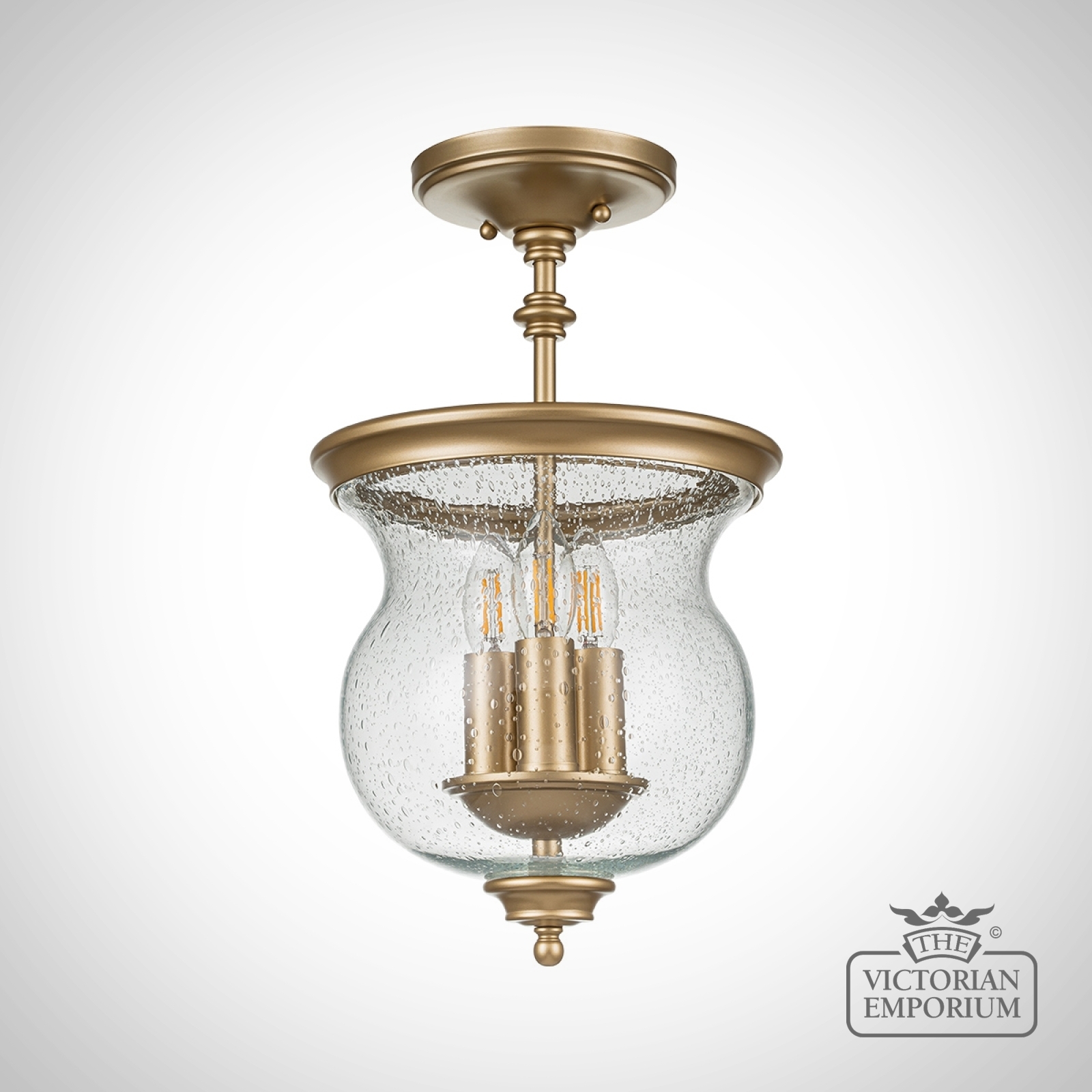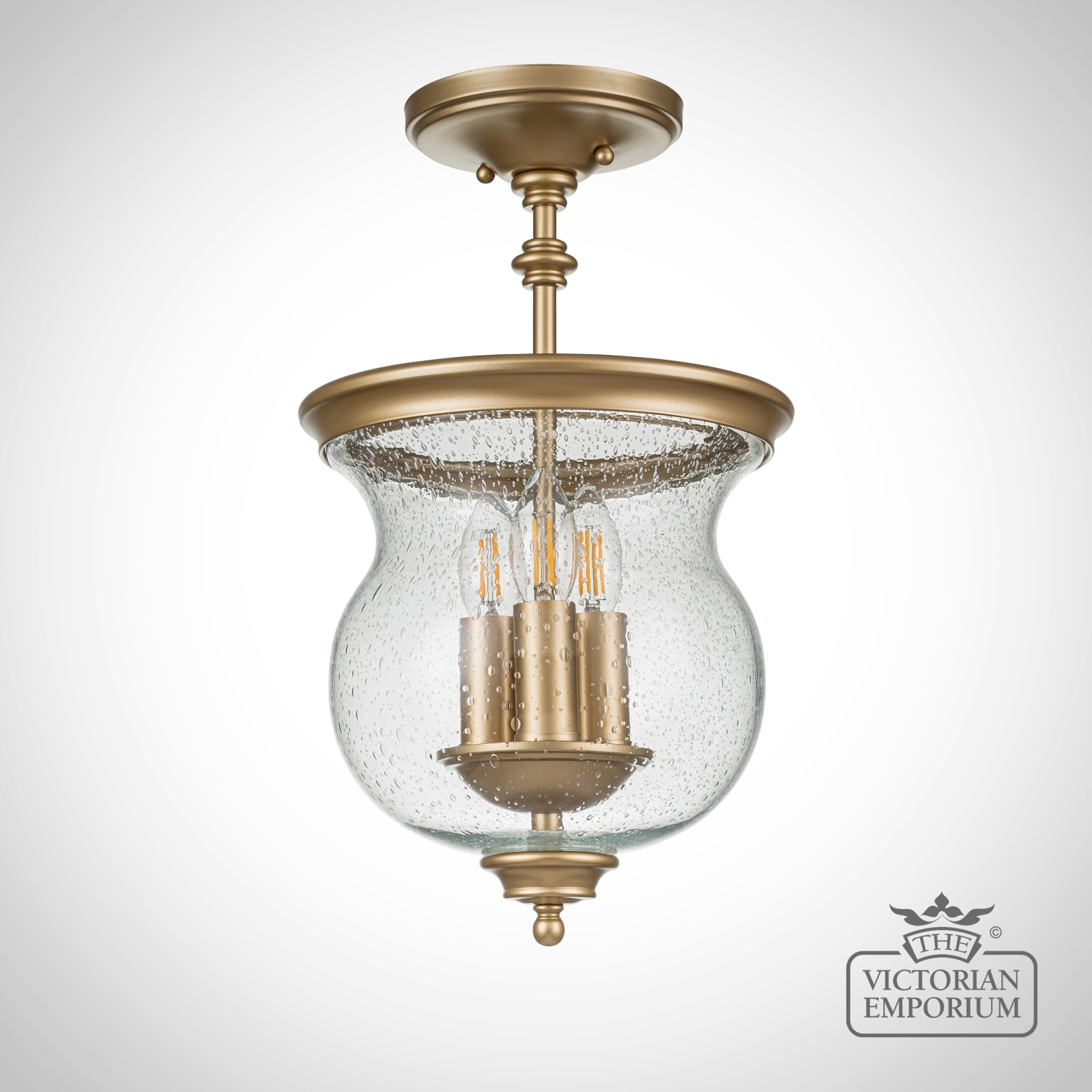 Heavily influenced by the country farmhouse look of Northern Europe taken from the early 1900s. With the storm glass look and tall candle effect, these country living feel fittings are supplied in a Painted Natural Brass finish
